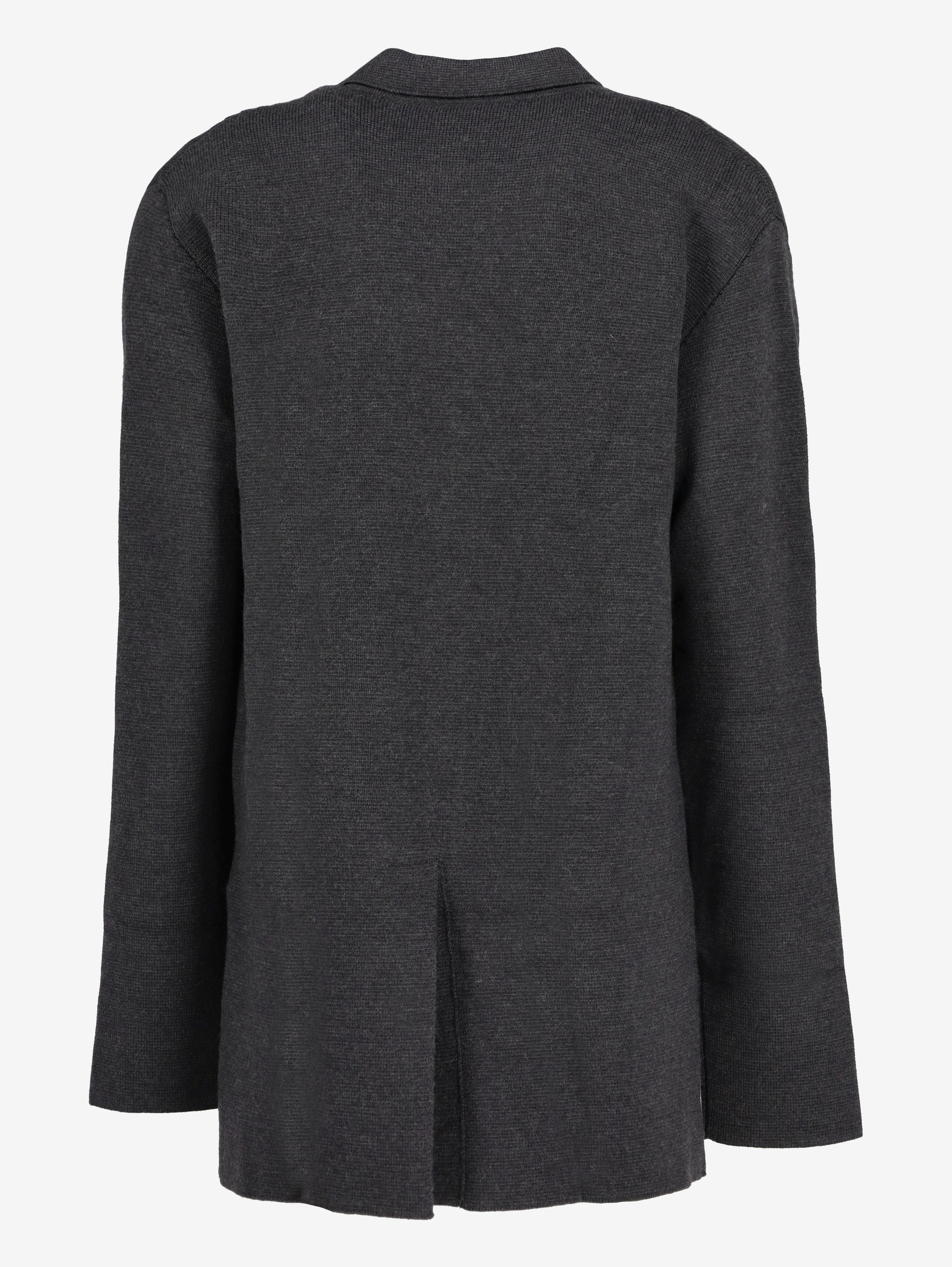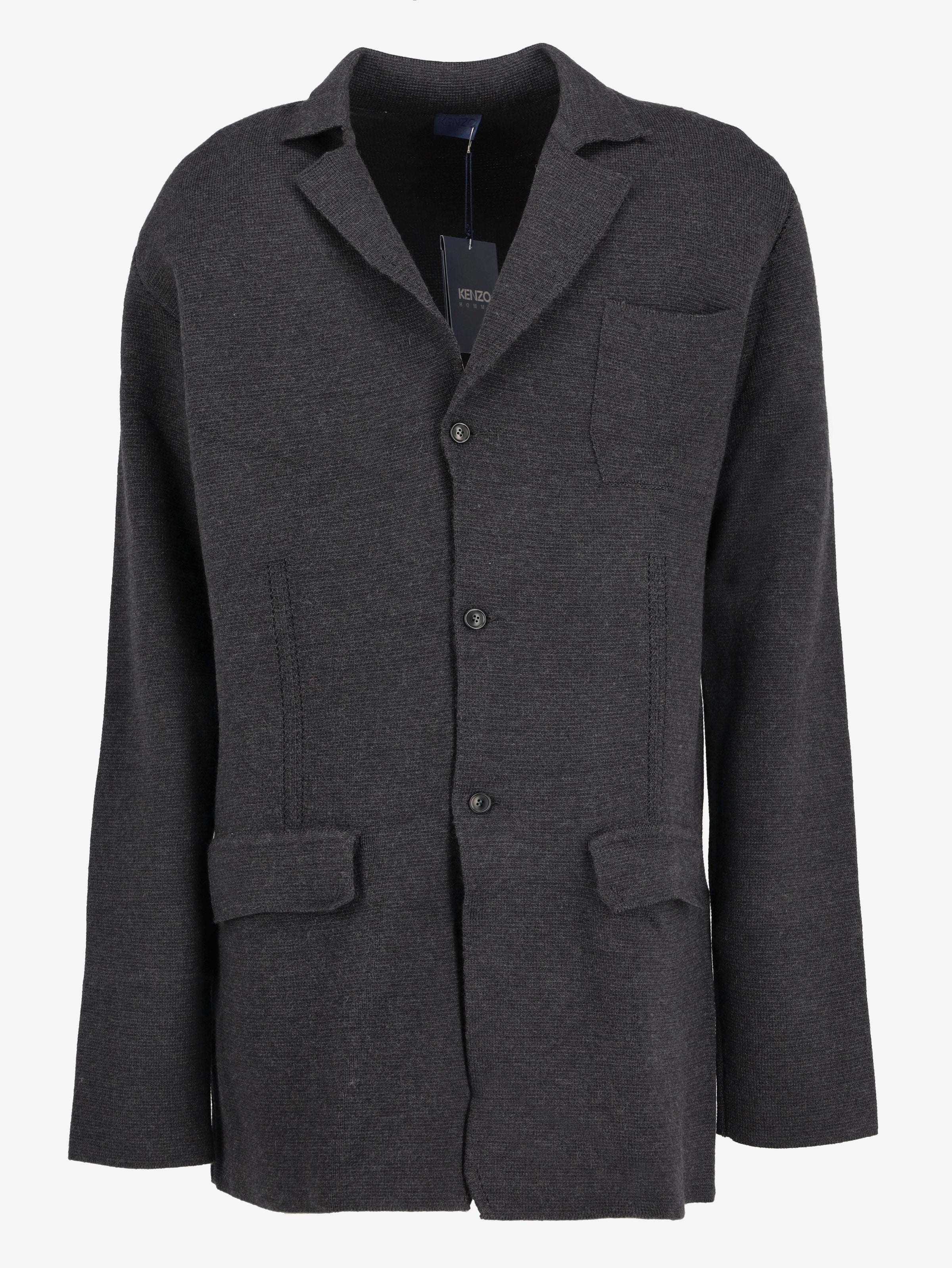 Kenzo Brown Knitted Cardigan. This cardigan features a collar V-neckline, front pockets, and a button-front closure. It comes with the original tag.