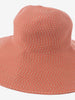 Bronté Vintage Summer Hat is a wide-brimmed hat made of orange cotton with contrasting thread stitching decorating the entire hat, with wire inside the brim that allows it to be shaped as desired.