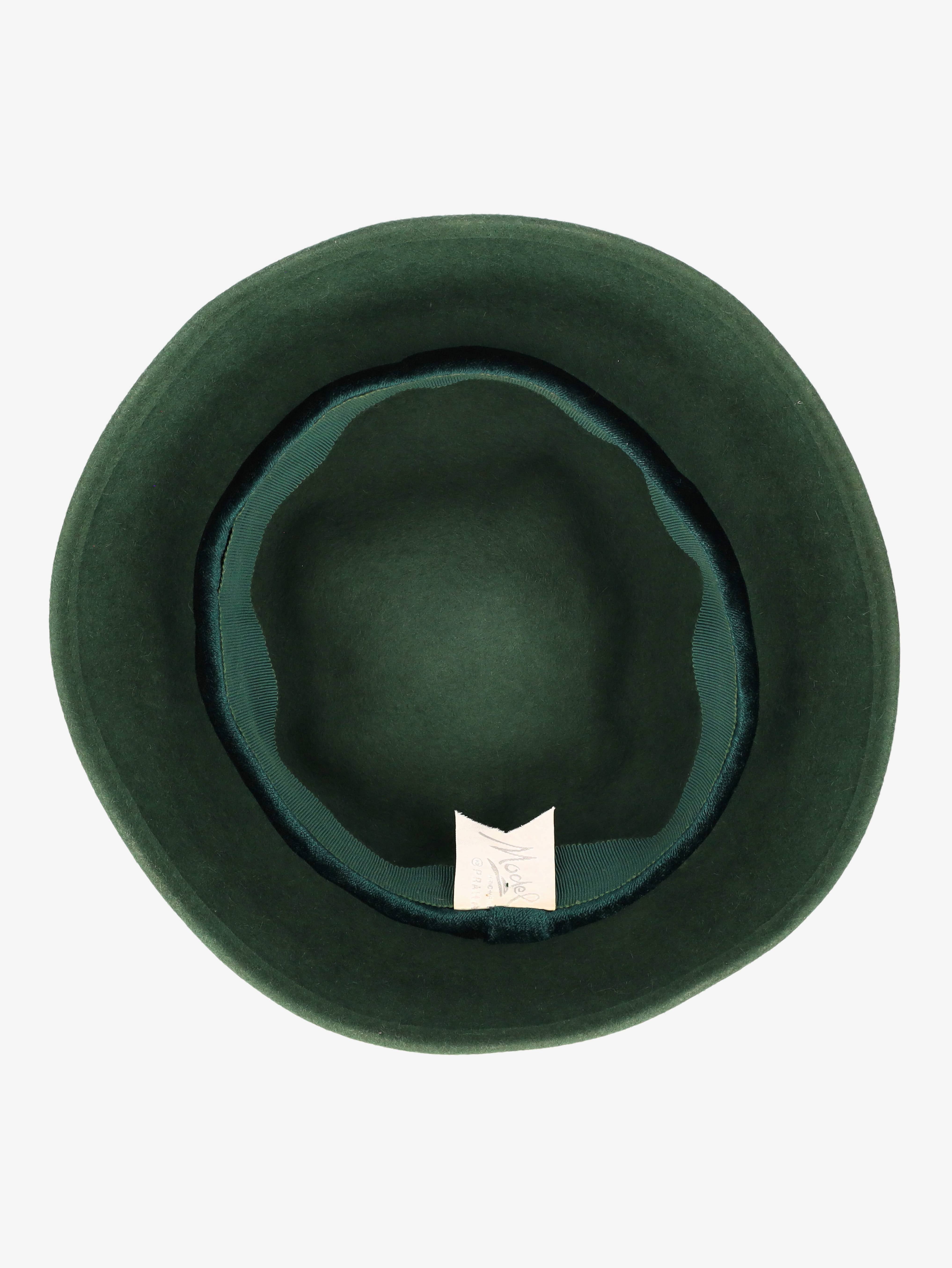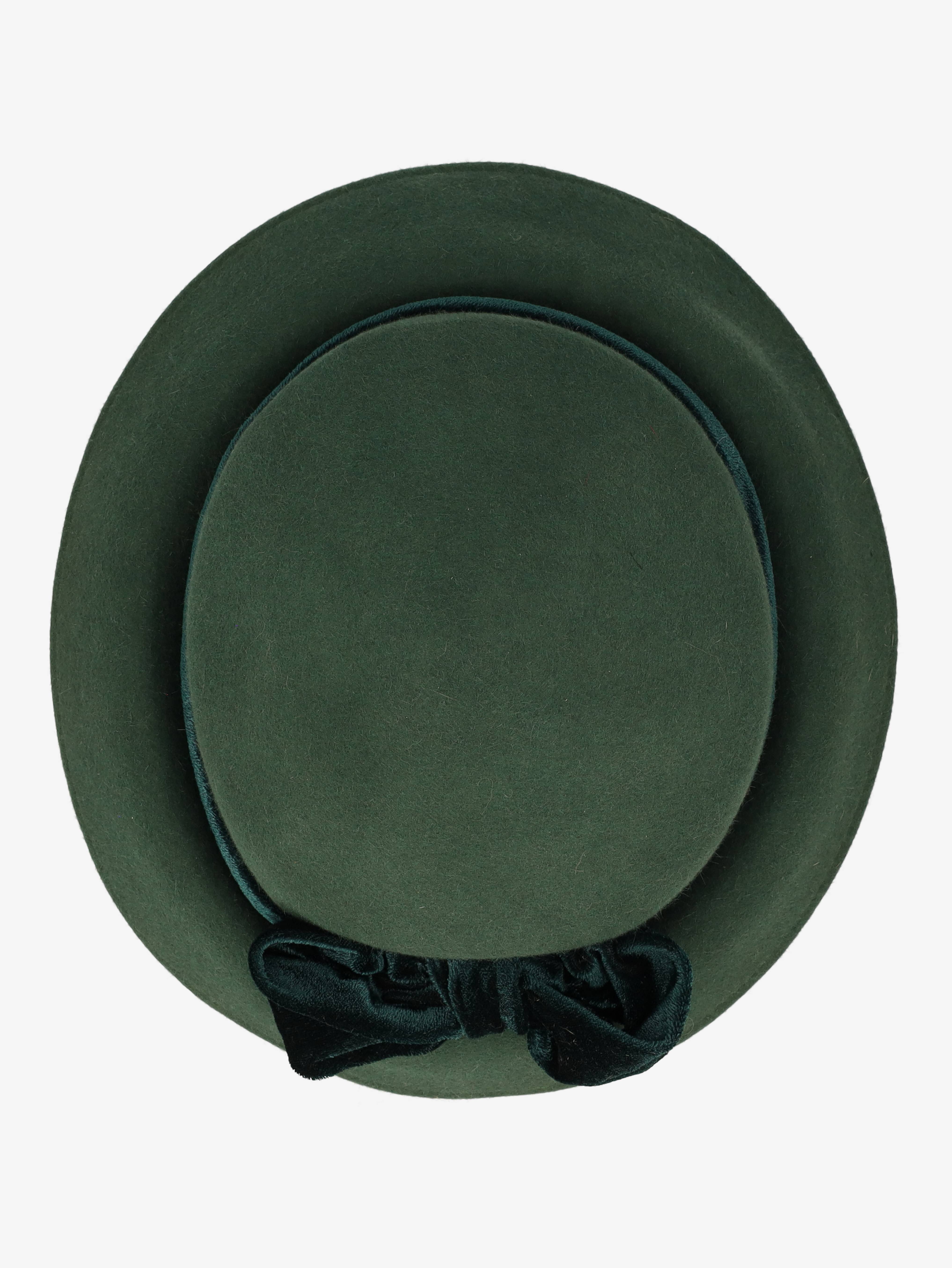 Vintage Green Wool Hat With Bow