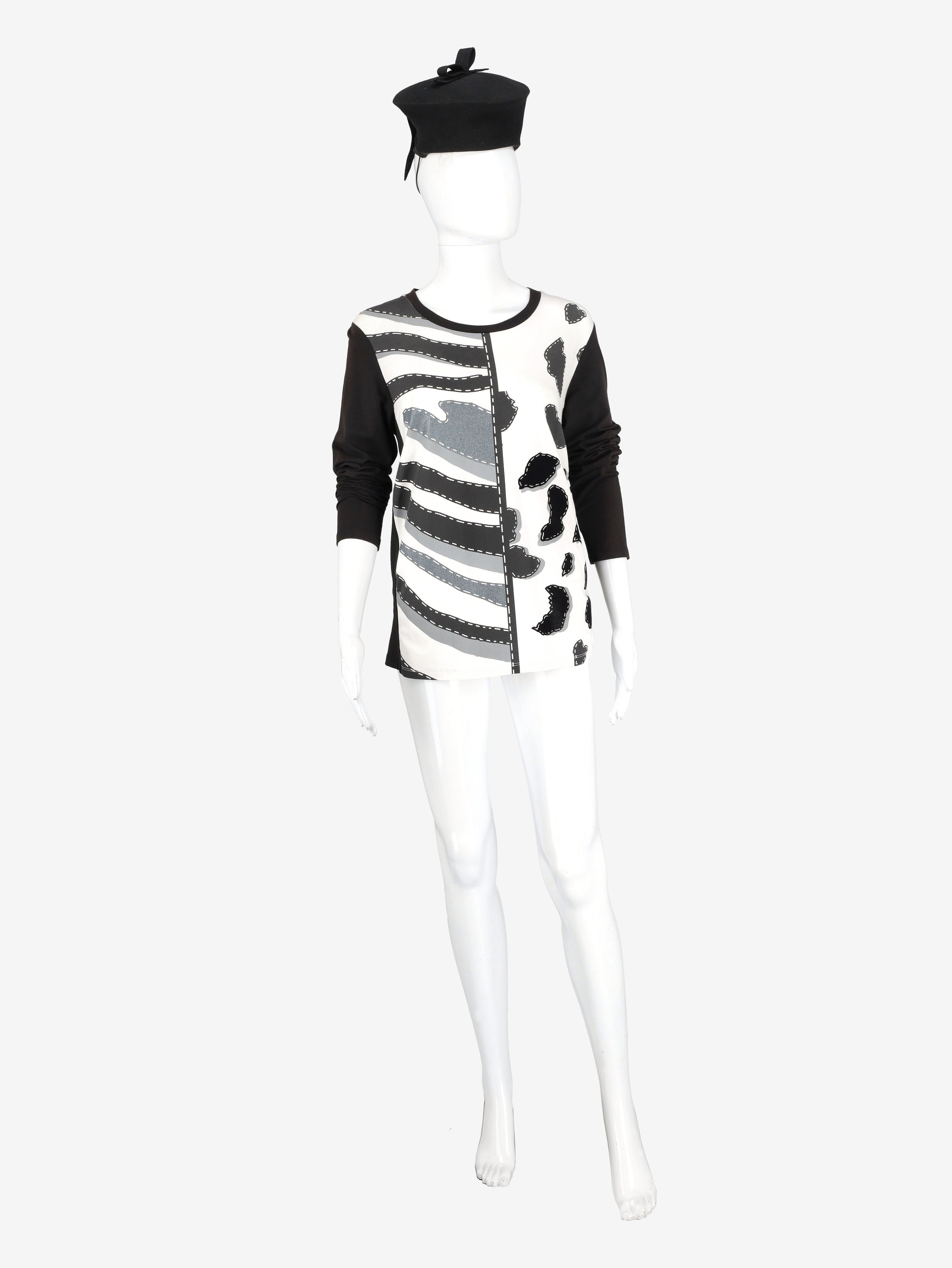 Krizia Animalier Long-sleeved Shirt is an iconic garment featuring round neckline and contrasting geometric print.