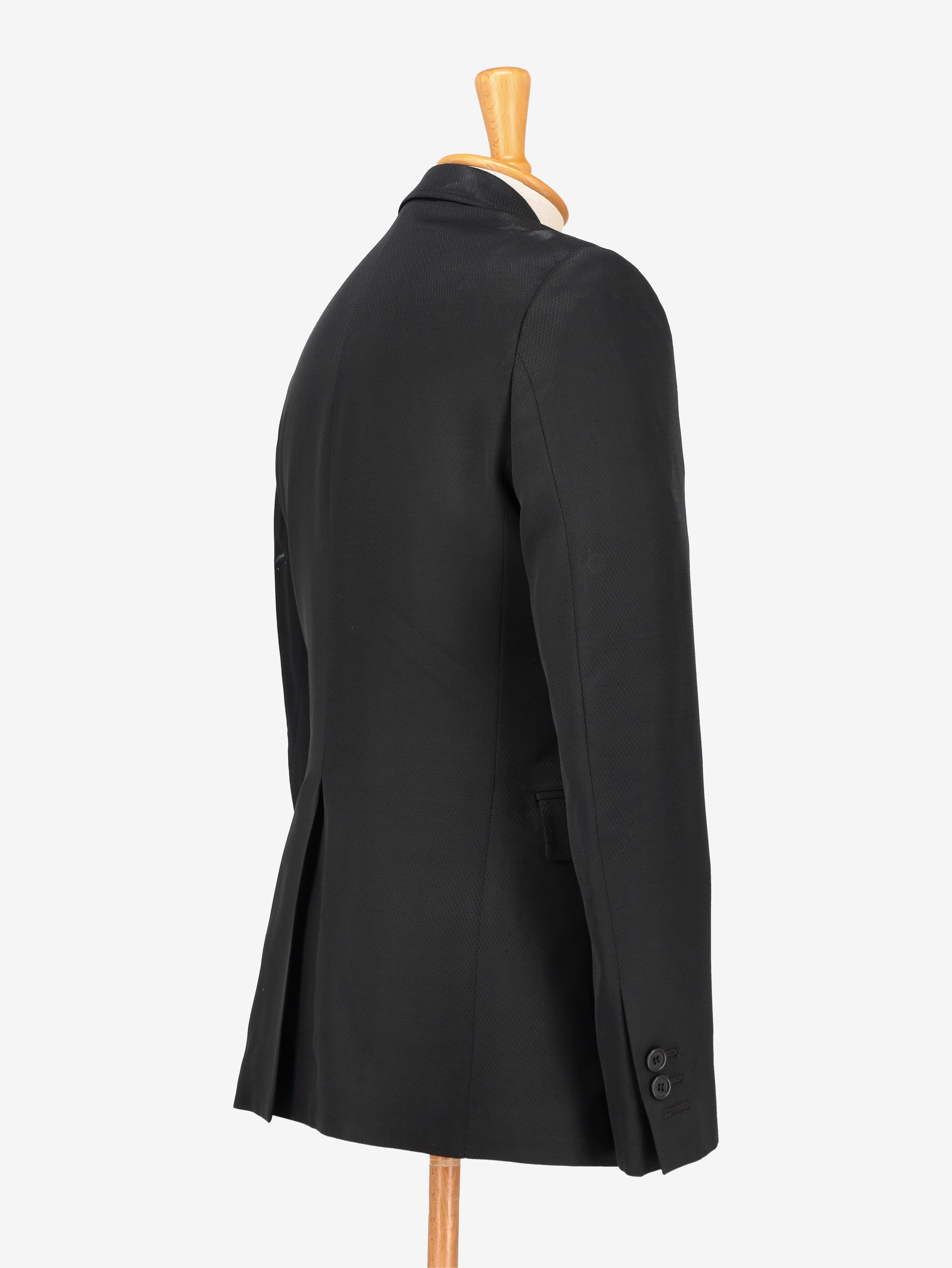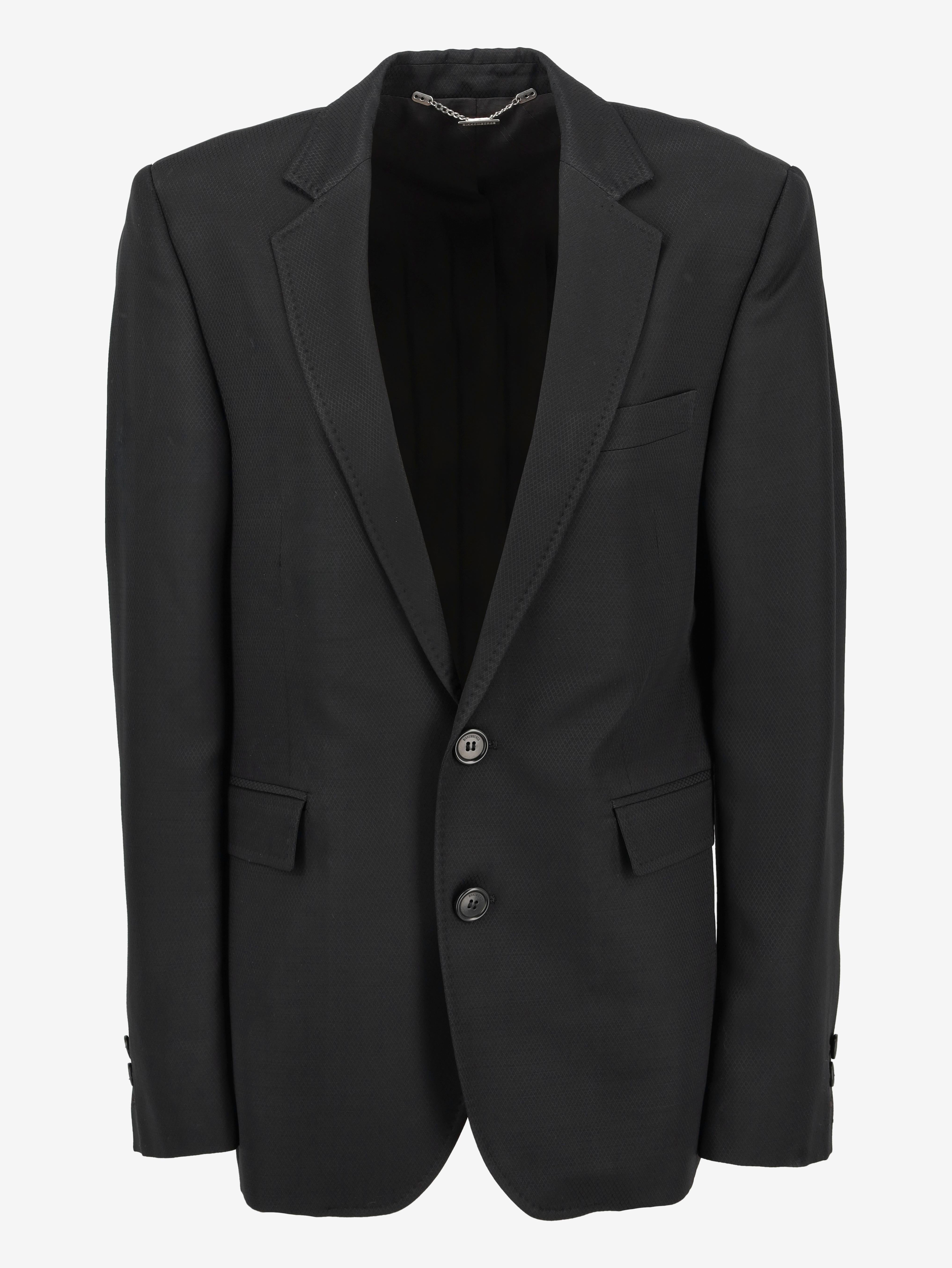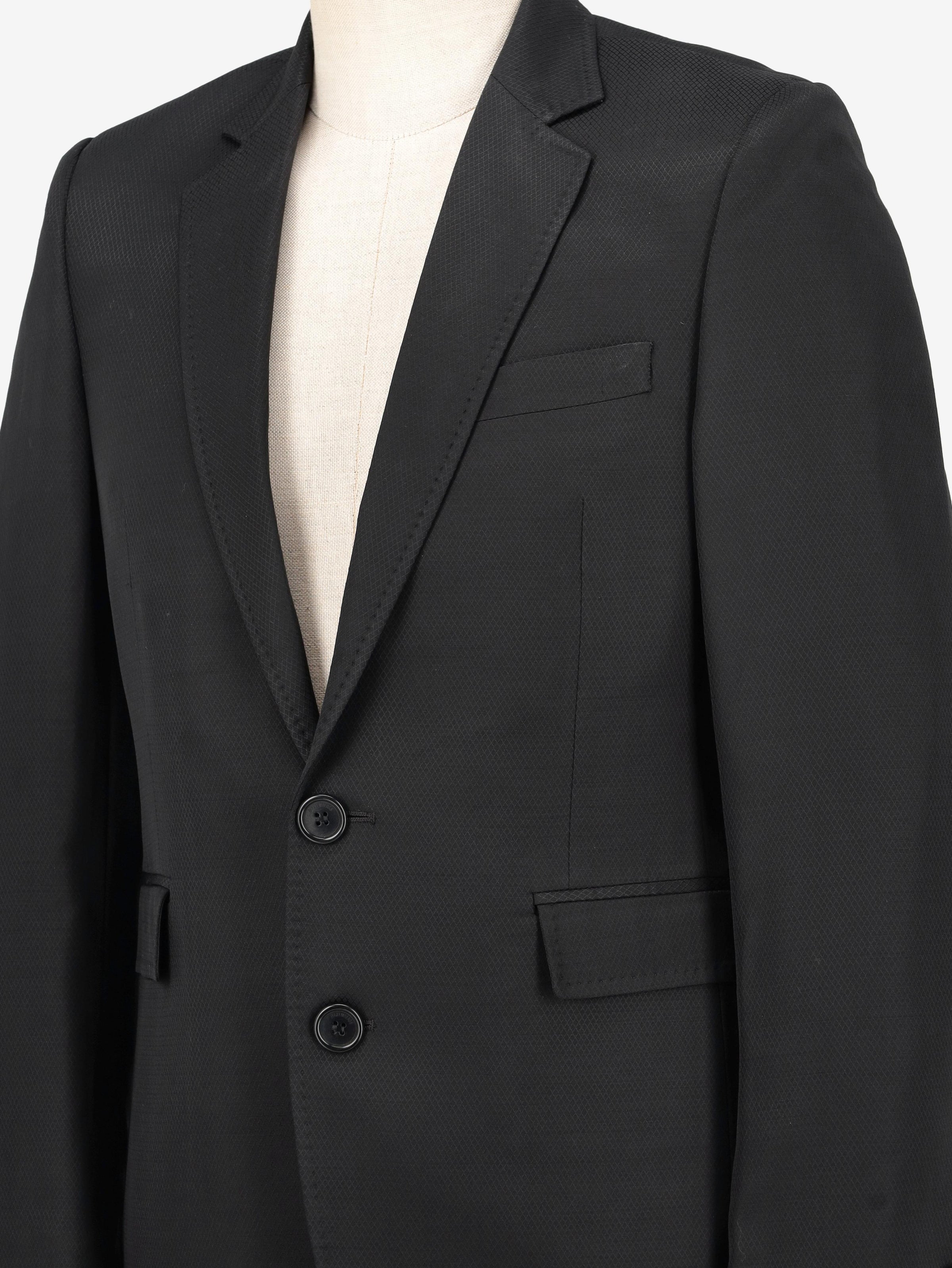 Bikkembergs Black Blazer is a slim-fit sports jacket with a two-button closure, three front pockets, and a small diamond pattern.