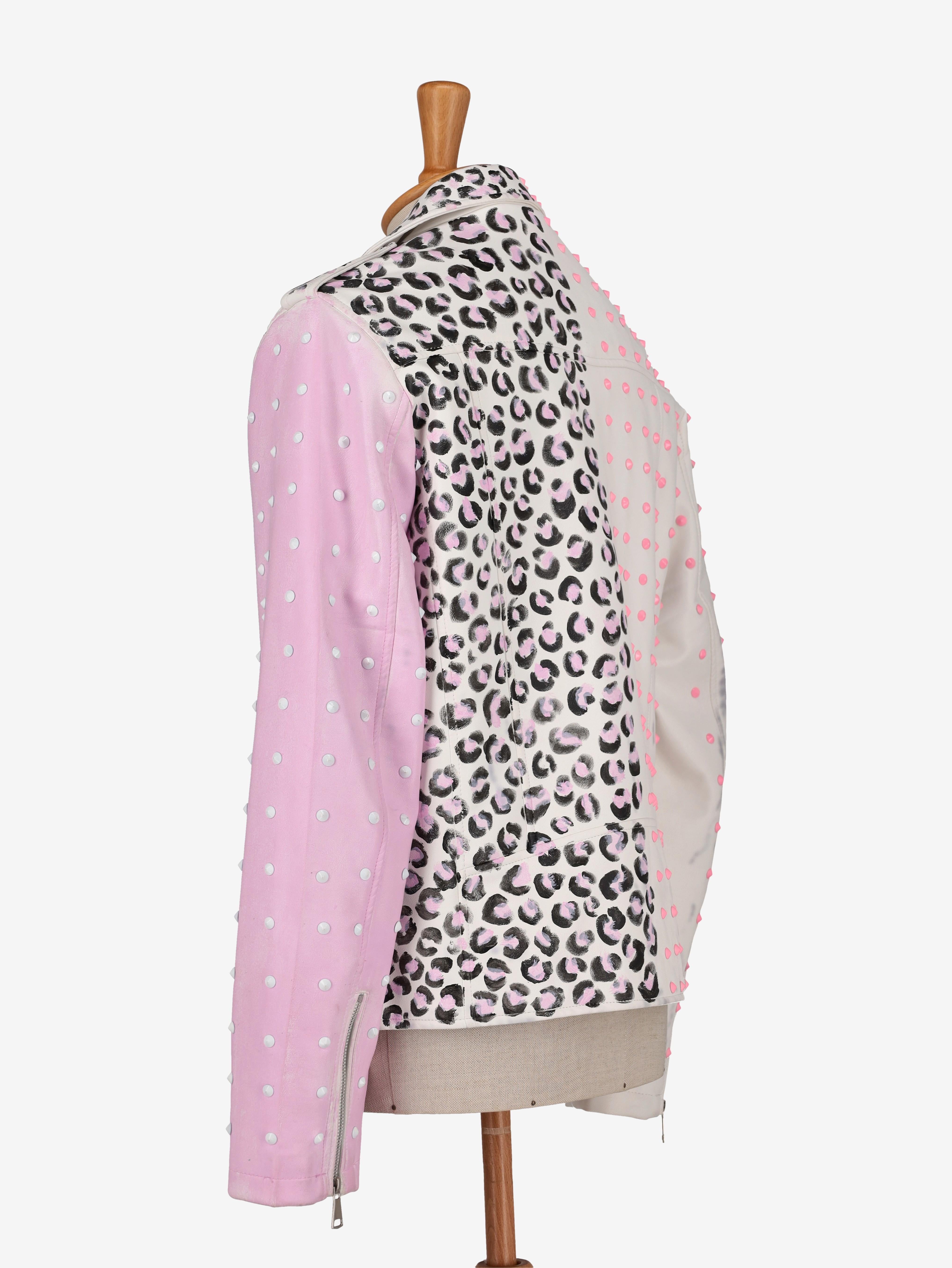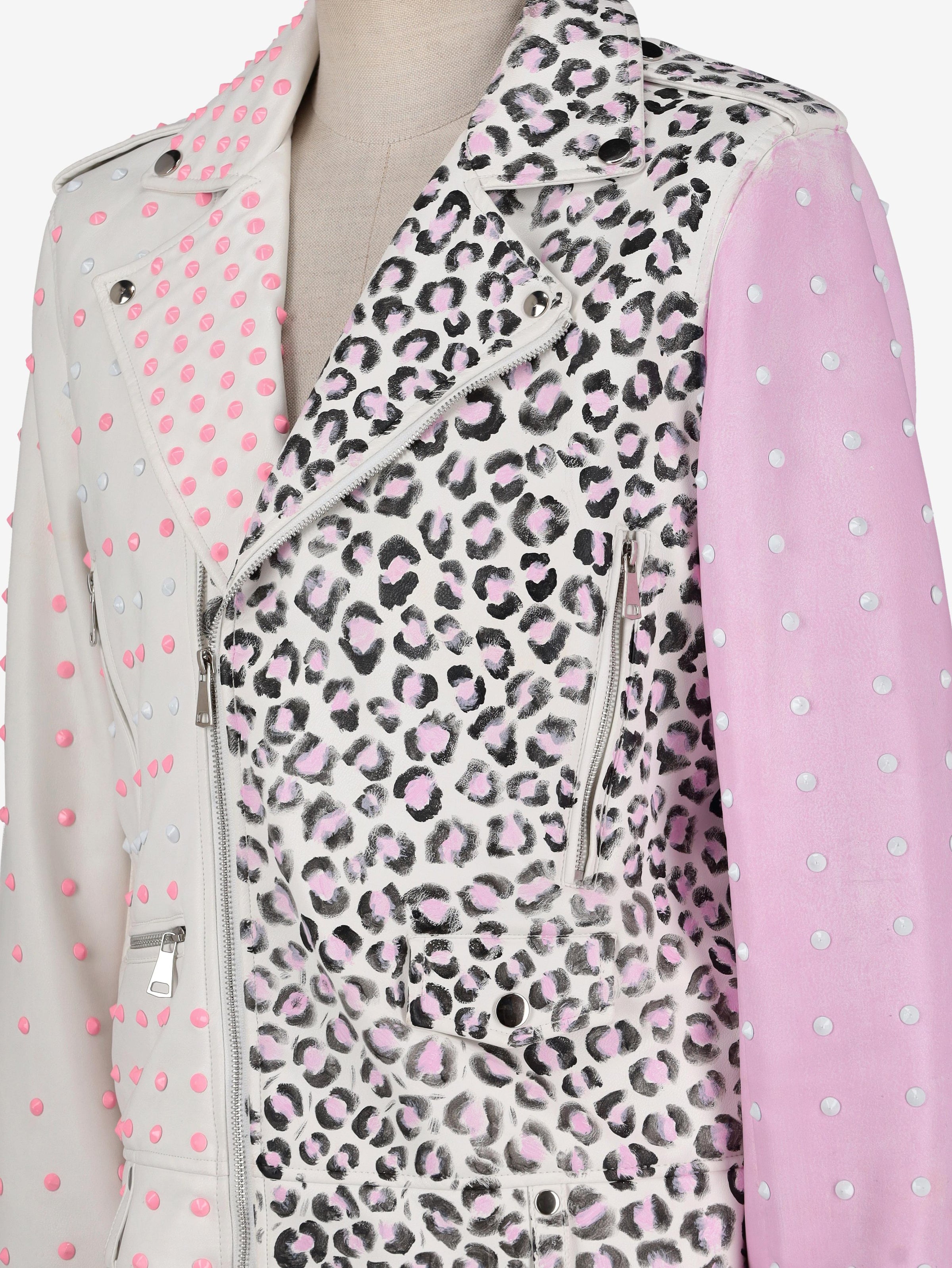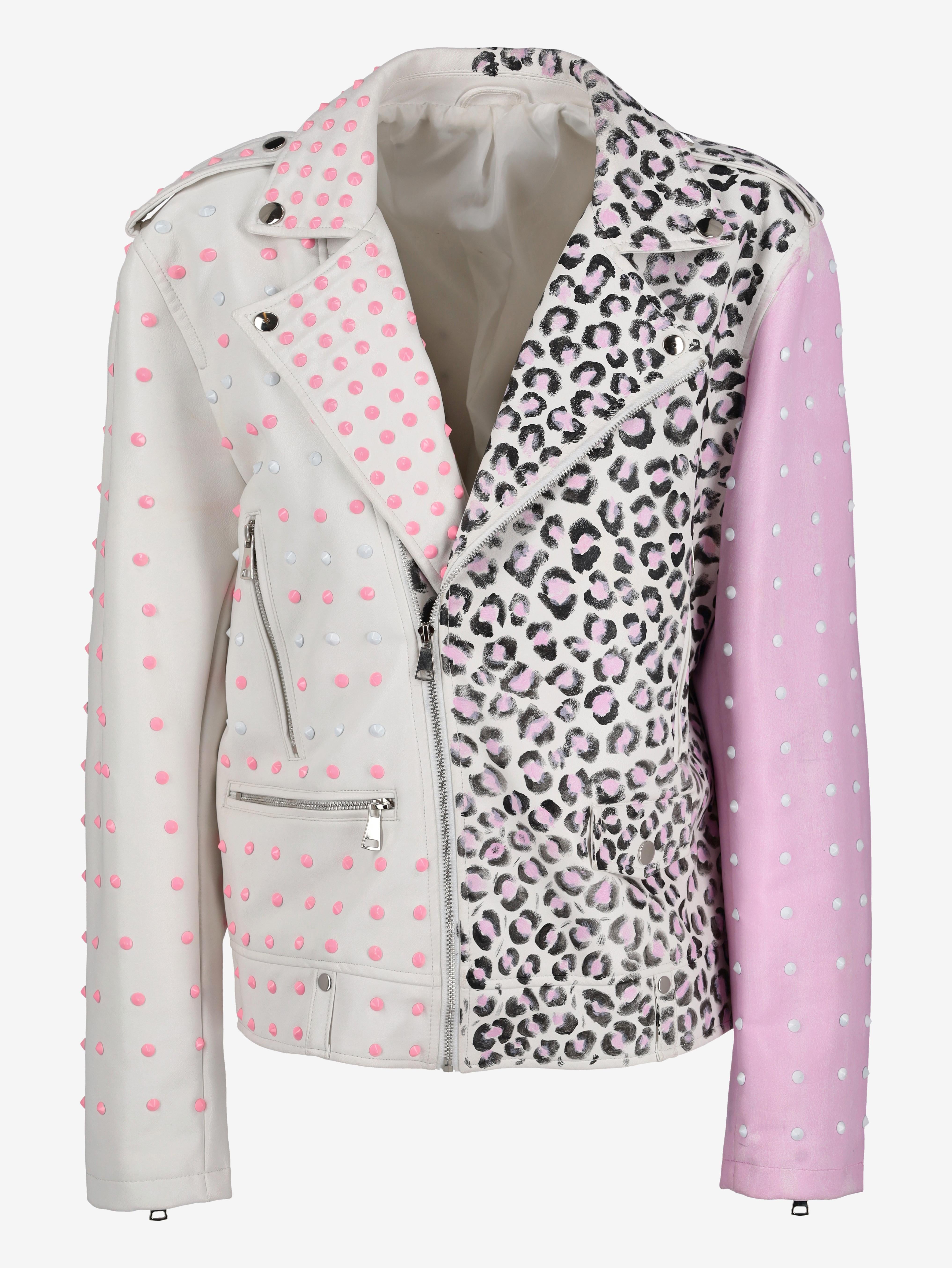 Vintage Pink Animalier Biker Jacket