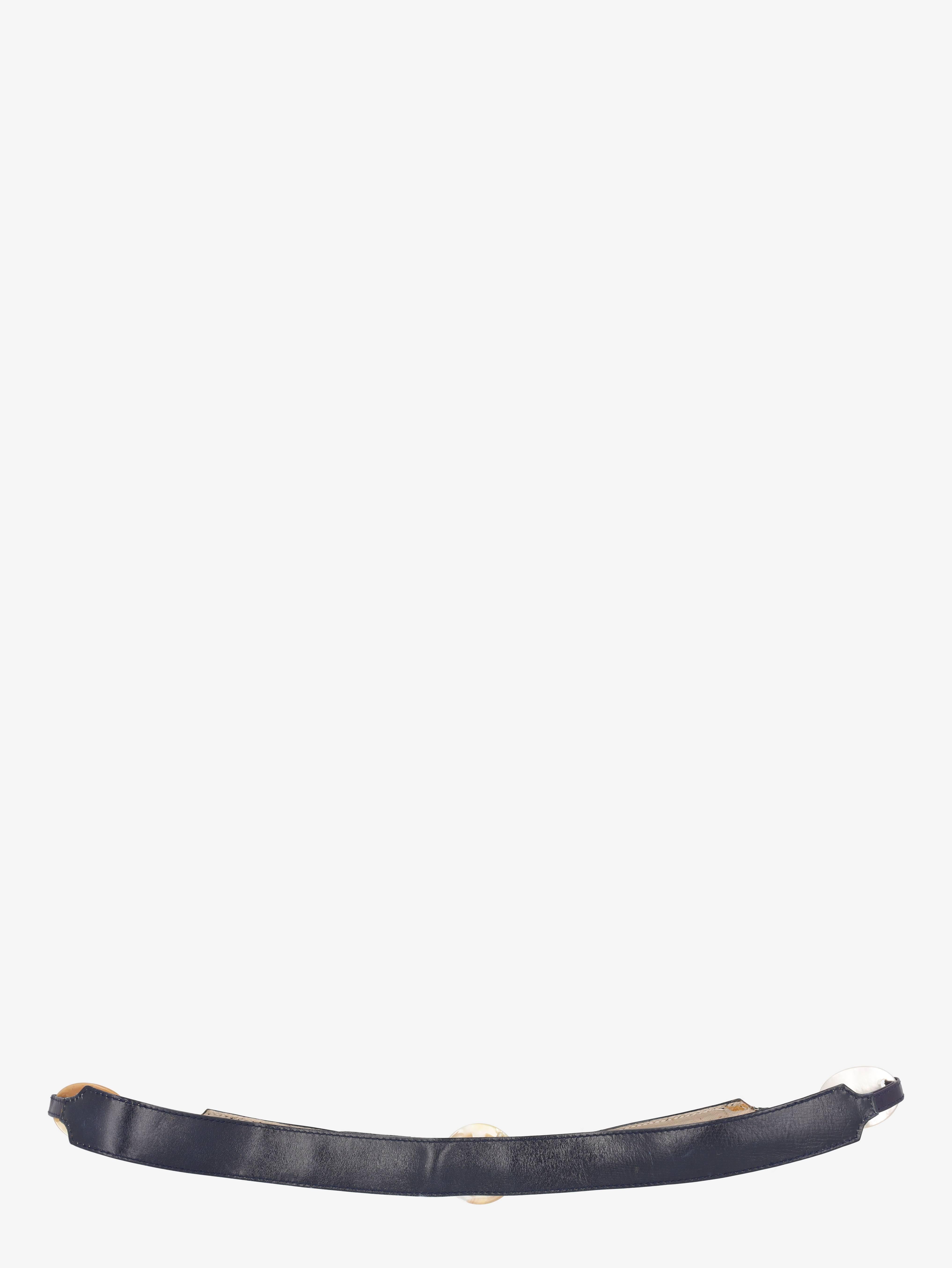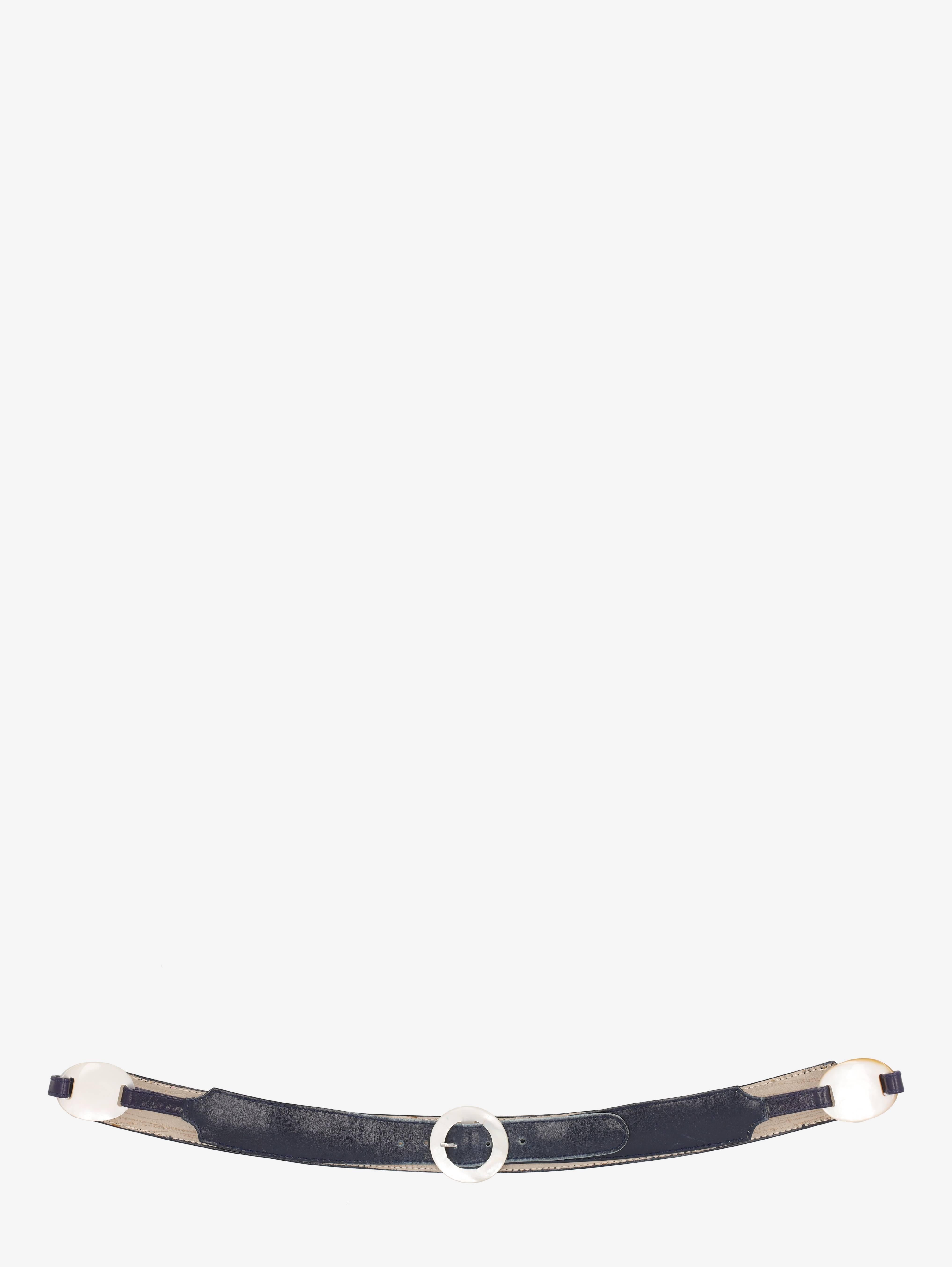 The Pirovano Vintage Belt is a leather belt with a double-hook closure, featuring a large buckle and metal details.