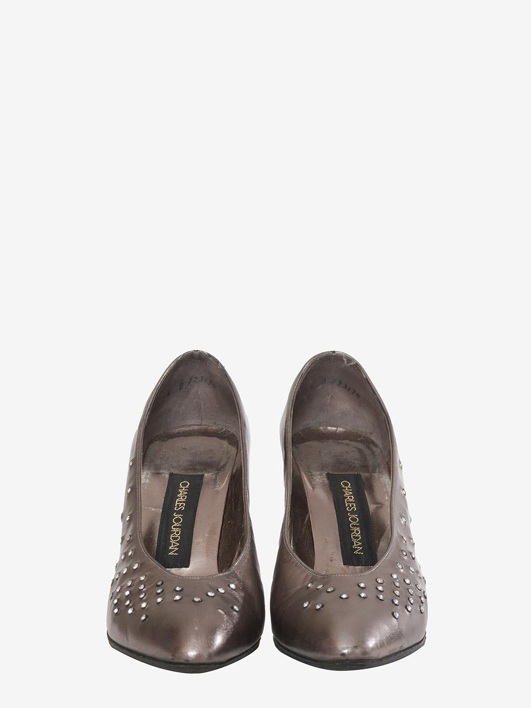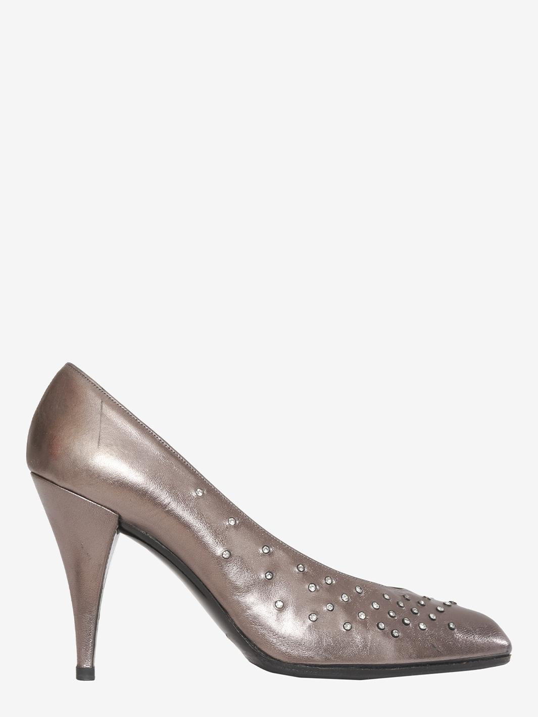 Metallic effect pumps with appliqués