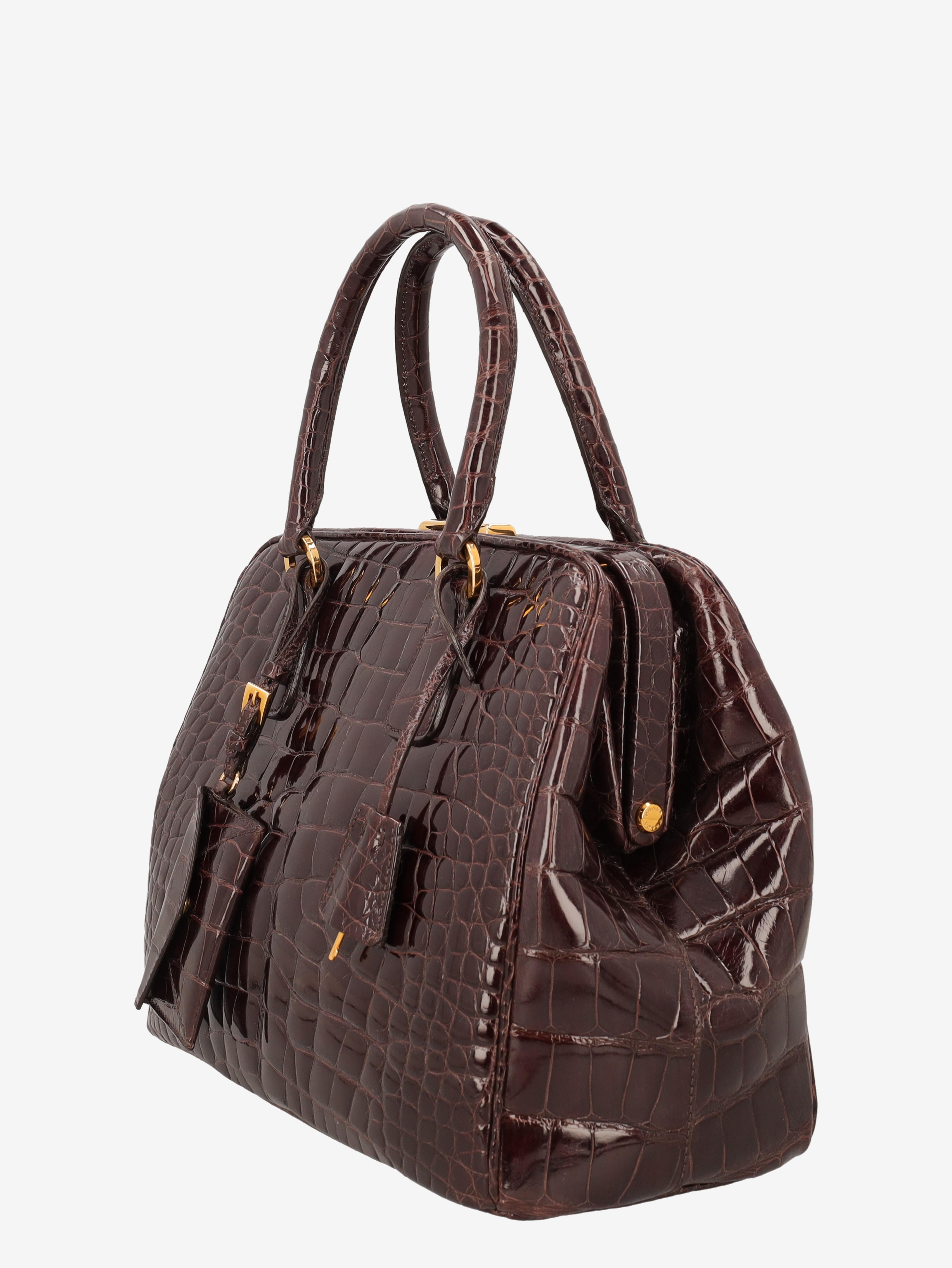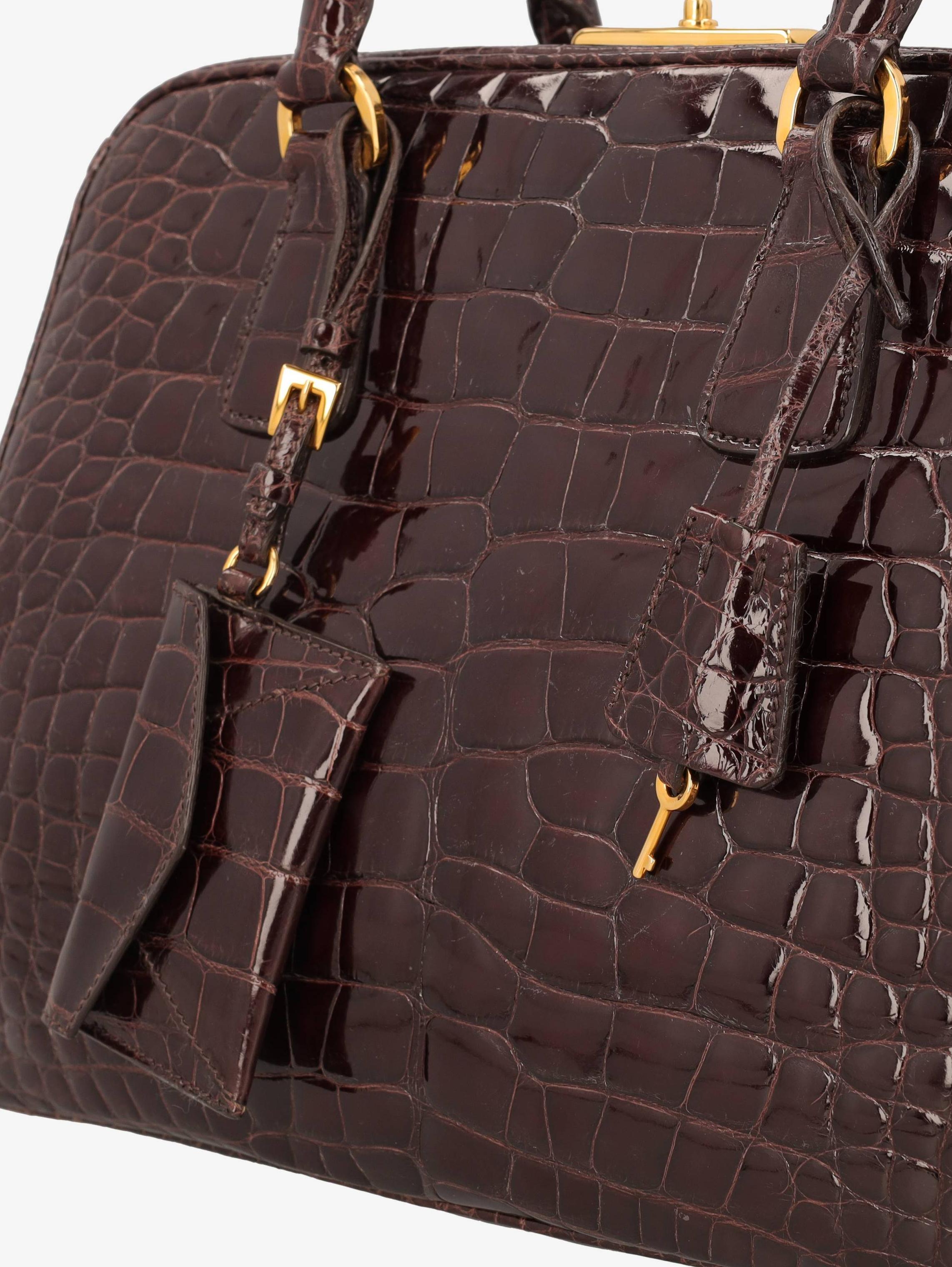 Prada Crocodile Bauletto Bag in Dark Brown Crocodile Leather