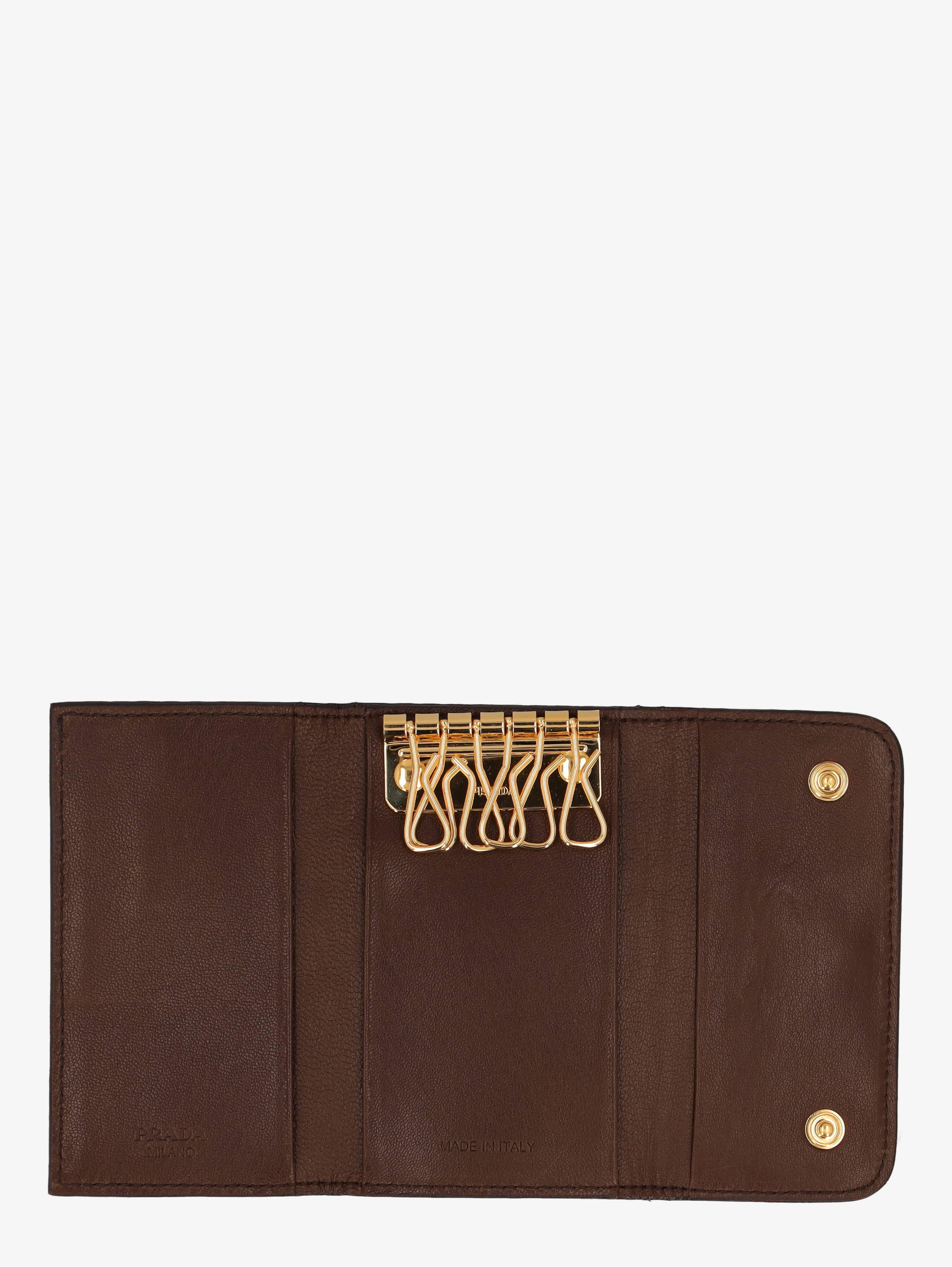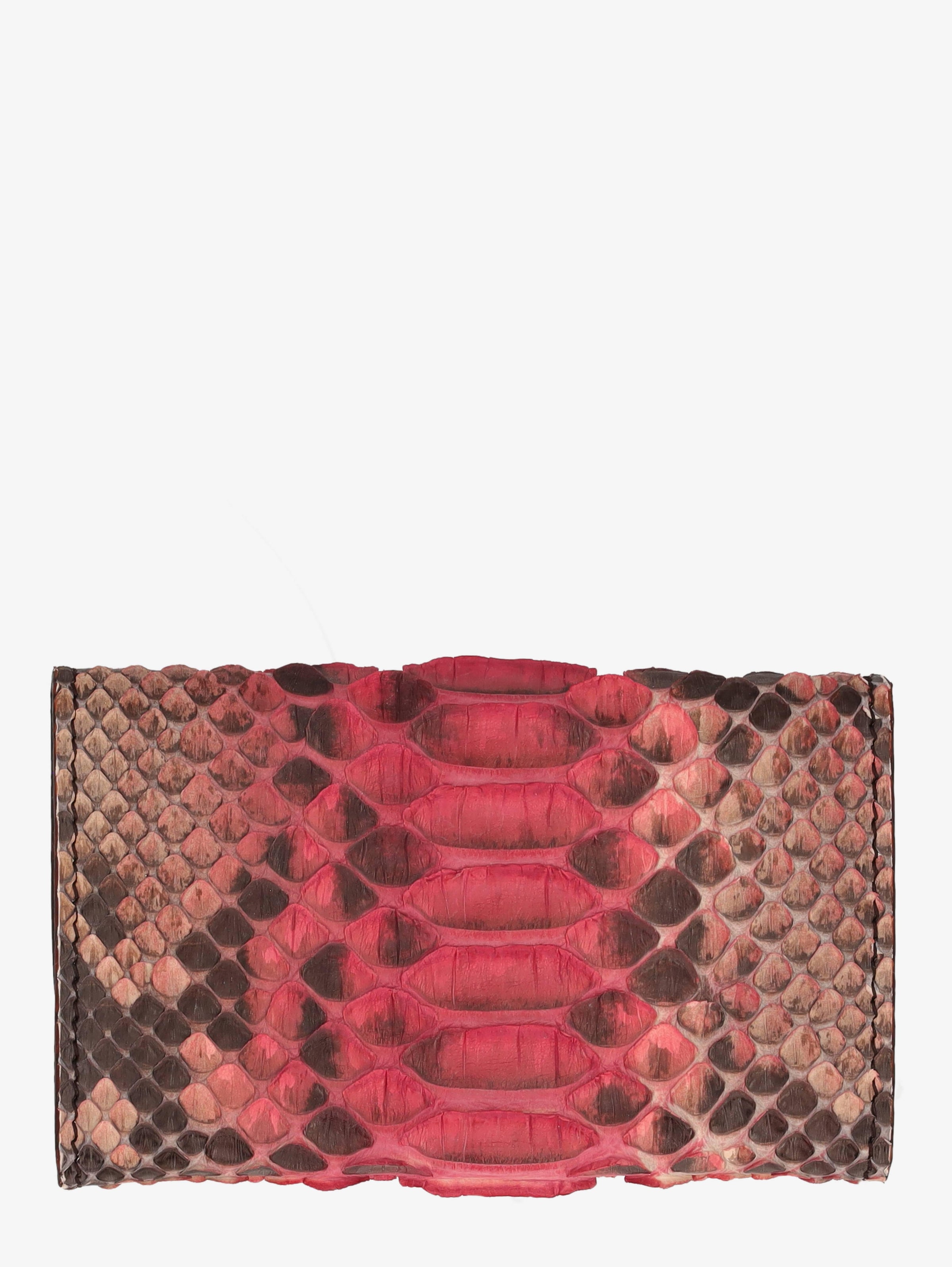 Prada Pink Snakeskin Key Case. This key case accommodates up to six keys and includes interior card slots for practical use as a mini wallet. It features a snap-button closure and comes in its original box.