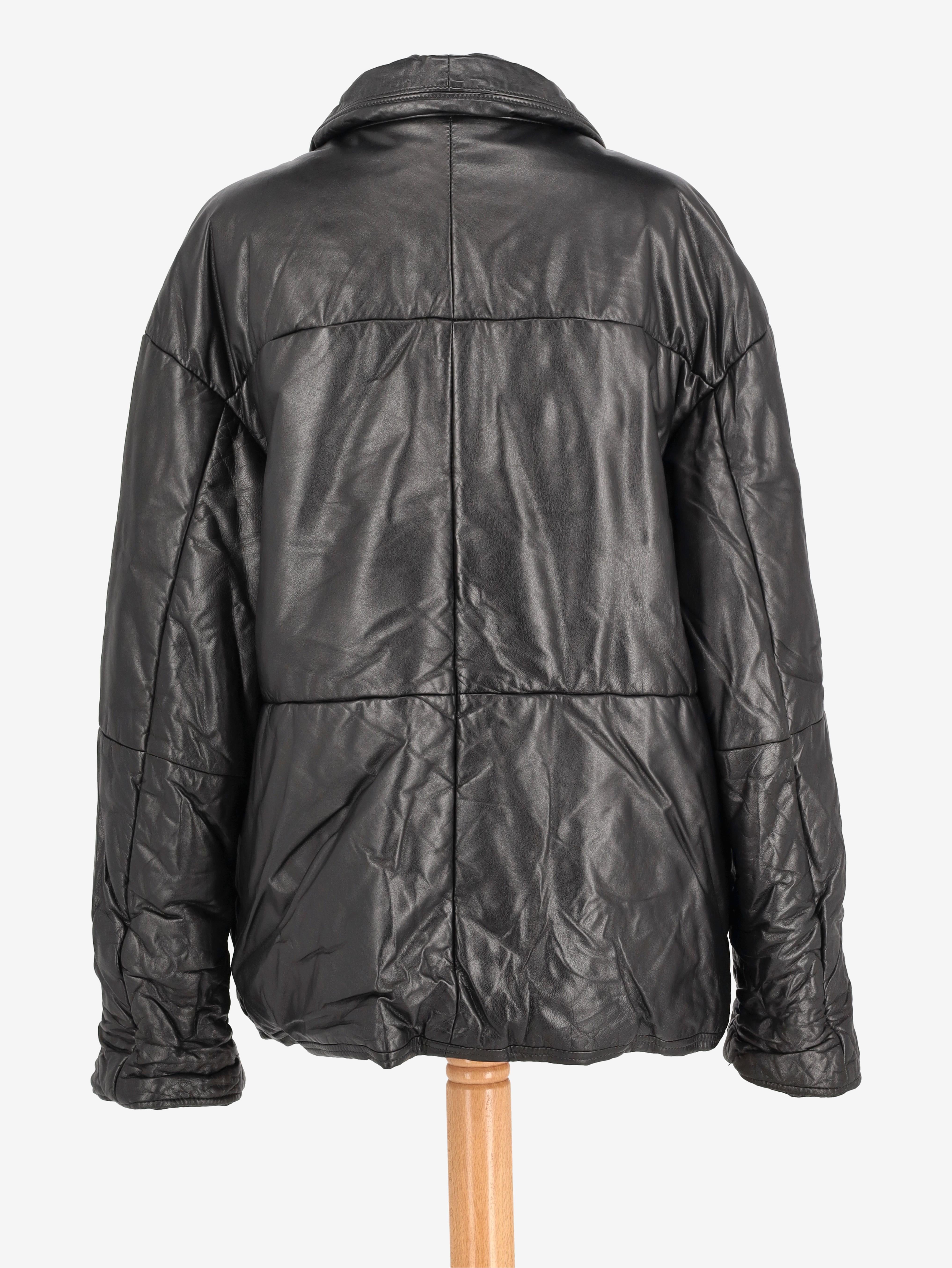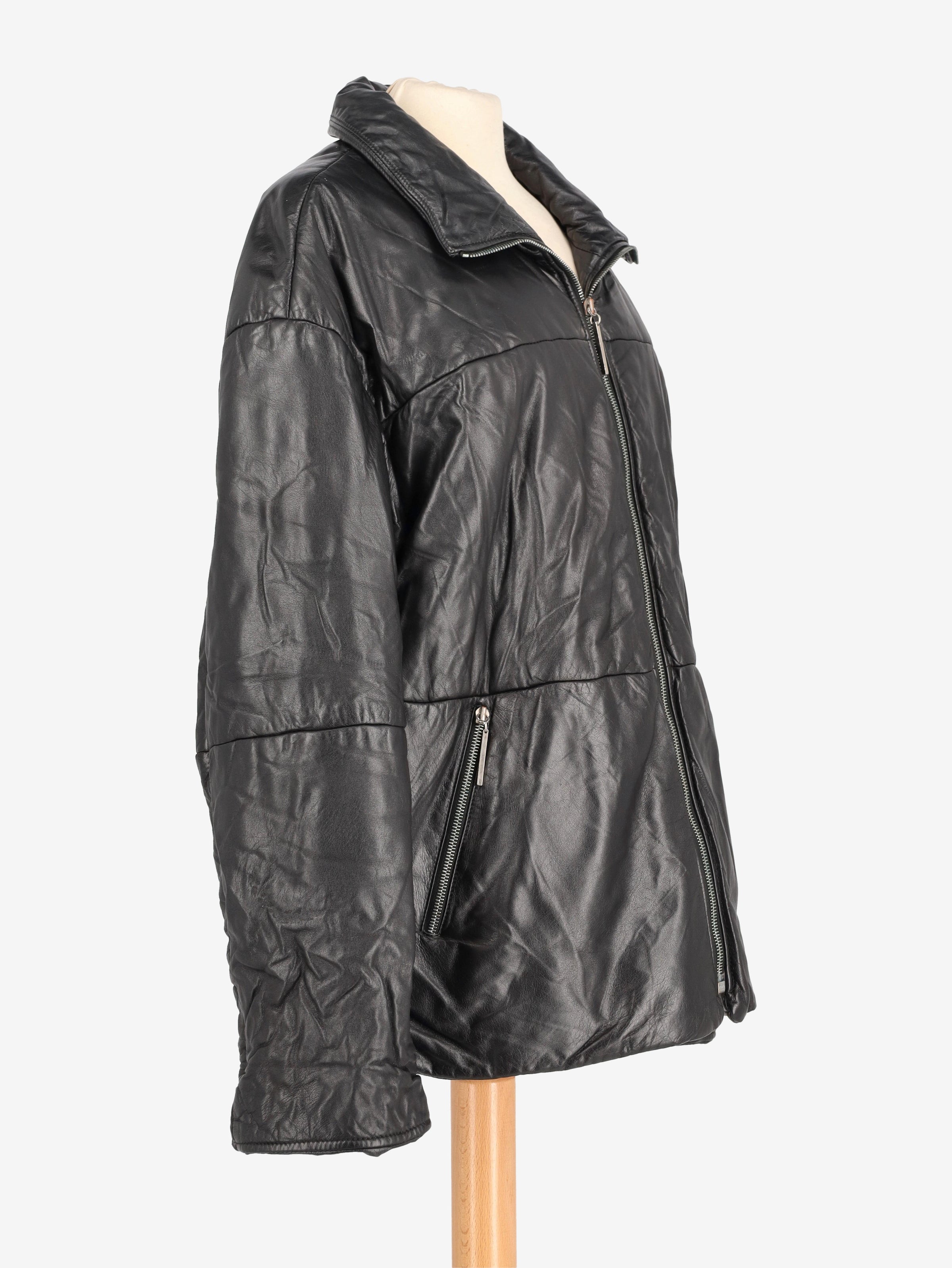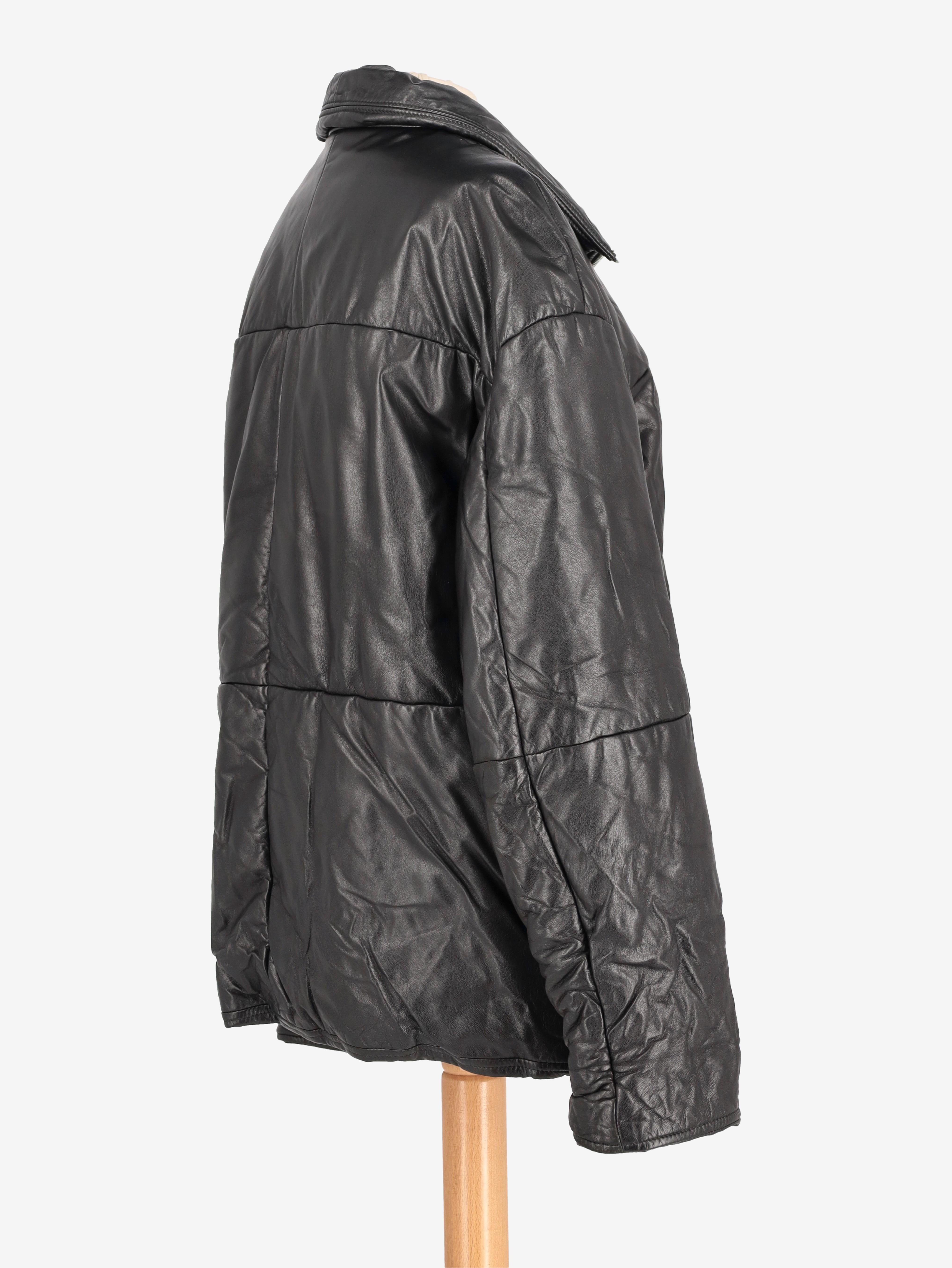 Vintage Leather Puffer Jacket. This leather puffer jacket features zippered pockets and a front zipper closure.