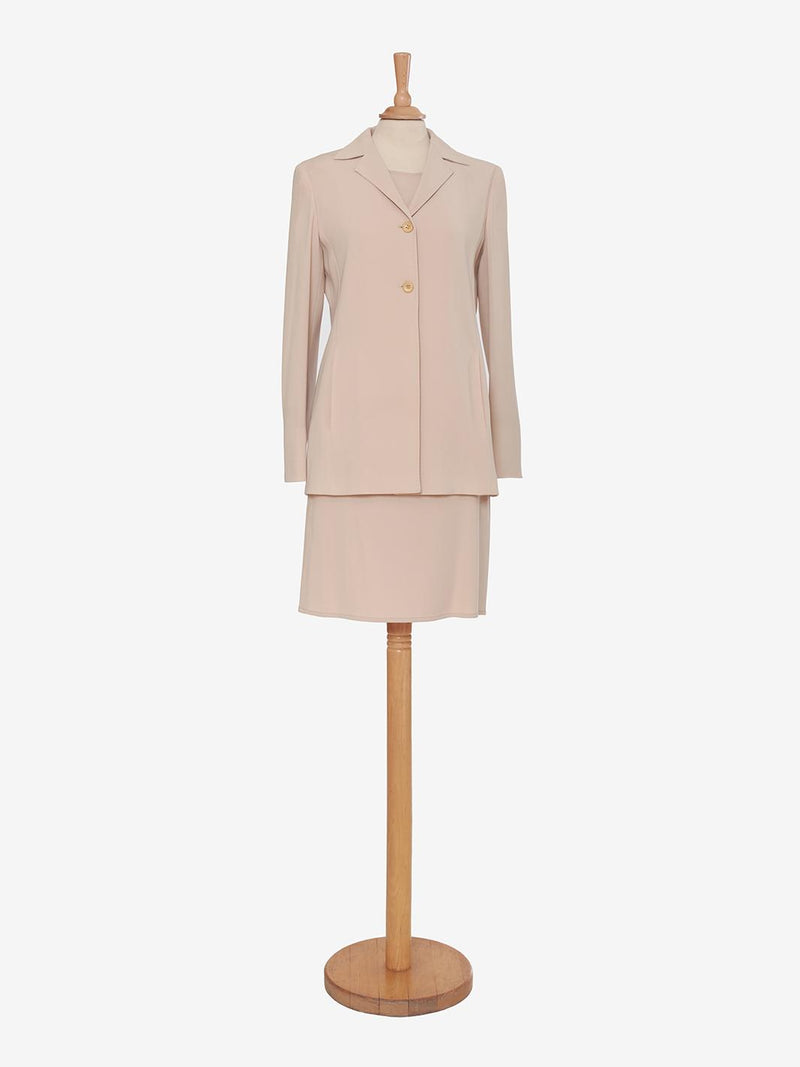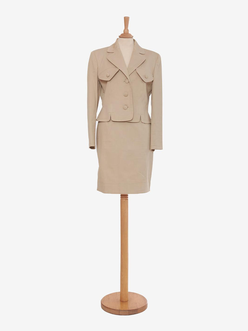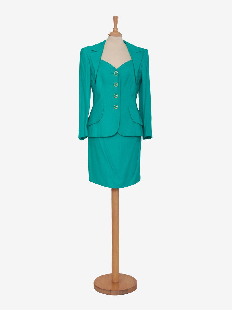 1990s Gianni Versace light green jacket and skirt suit in cool wool