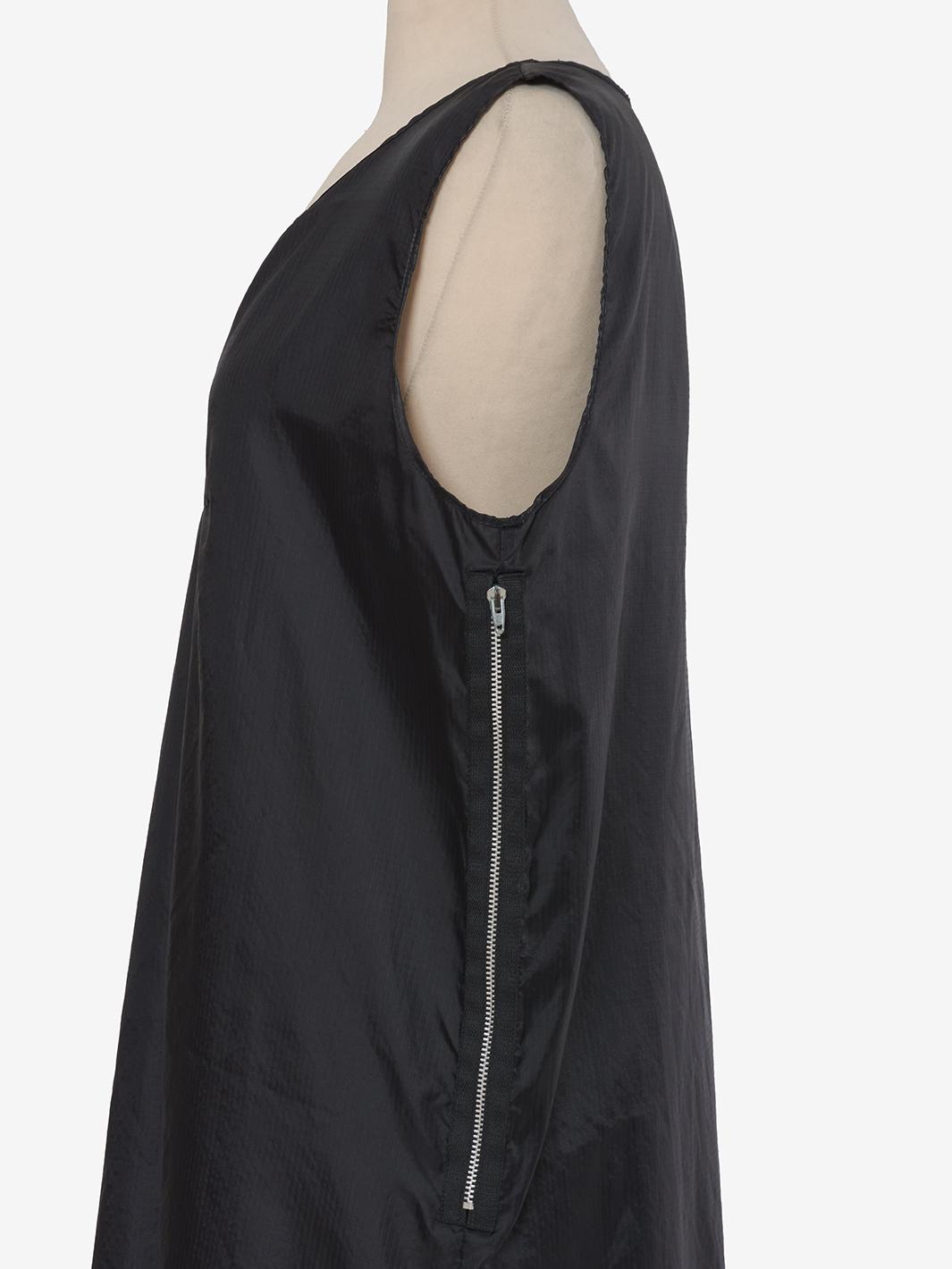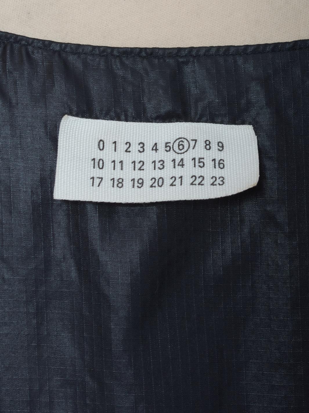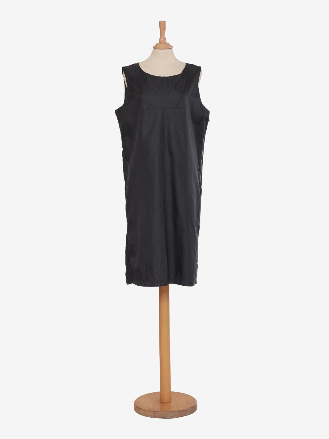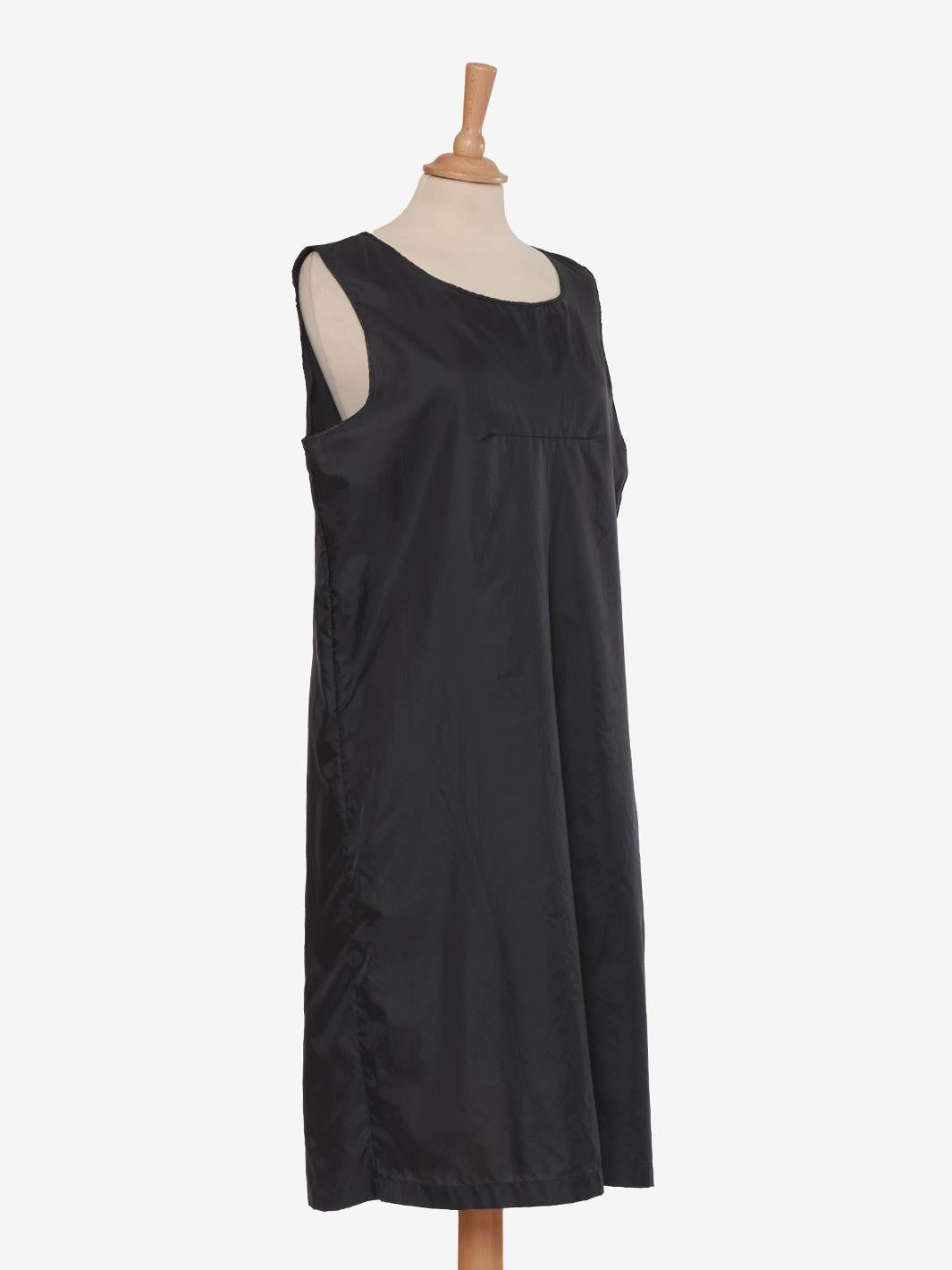 The design of this dress features a modern and elegant silhouette enhanced by the black nylon fabric. Nylon is a technical material that gives the dress a contemporary and experimental look, typical of Maison Margiela's innovative style.