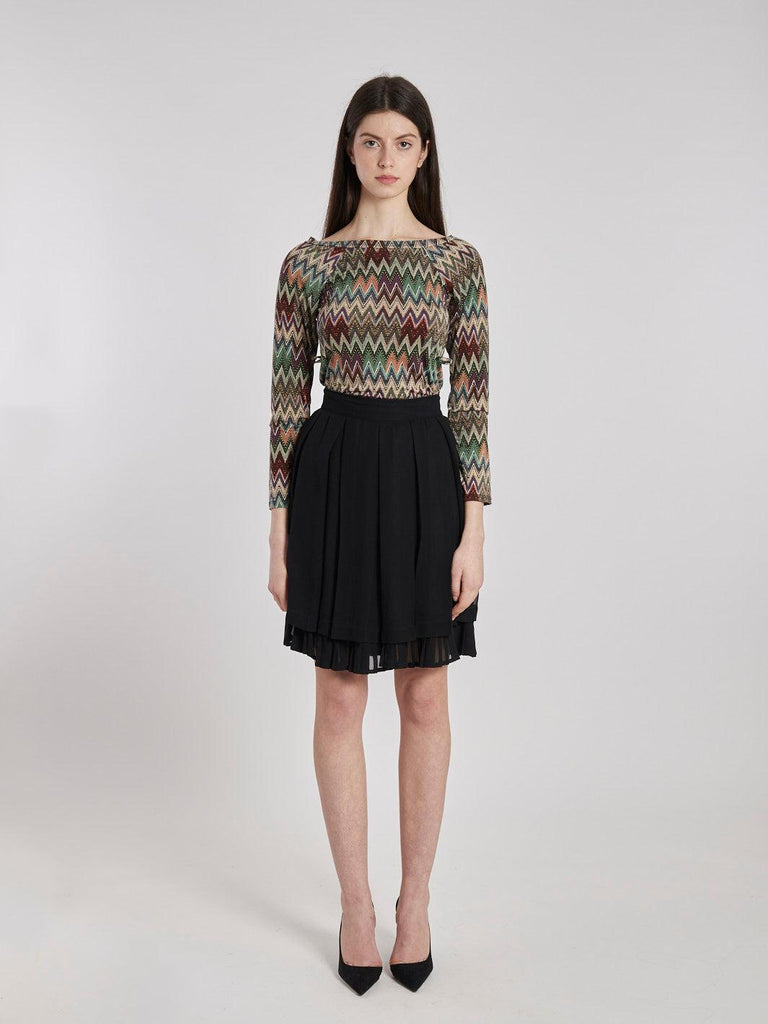Sportmax black pleated skirt made of 65% acetate and 35% polyamide. Slightly see-through fabric with petticoat. An item with a contemporary vibe, to wear both at work and, properly accessorised in the evening, perhaps with a silk blouse and statement jewellery.