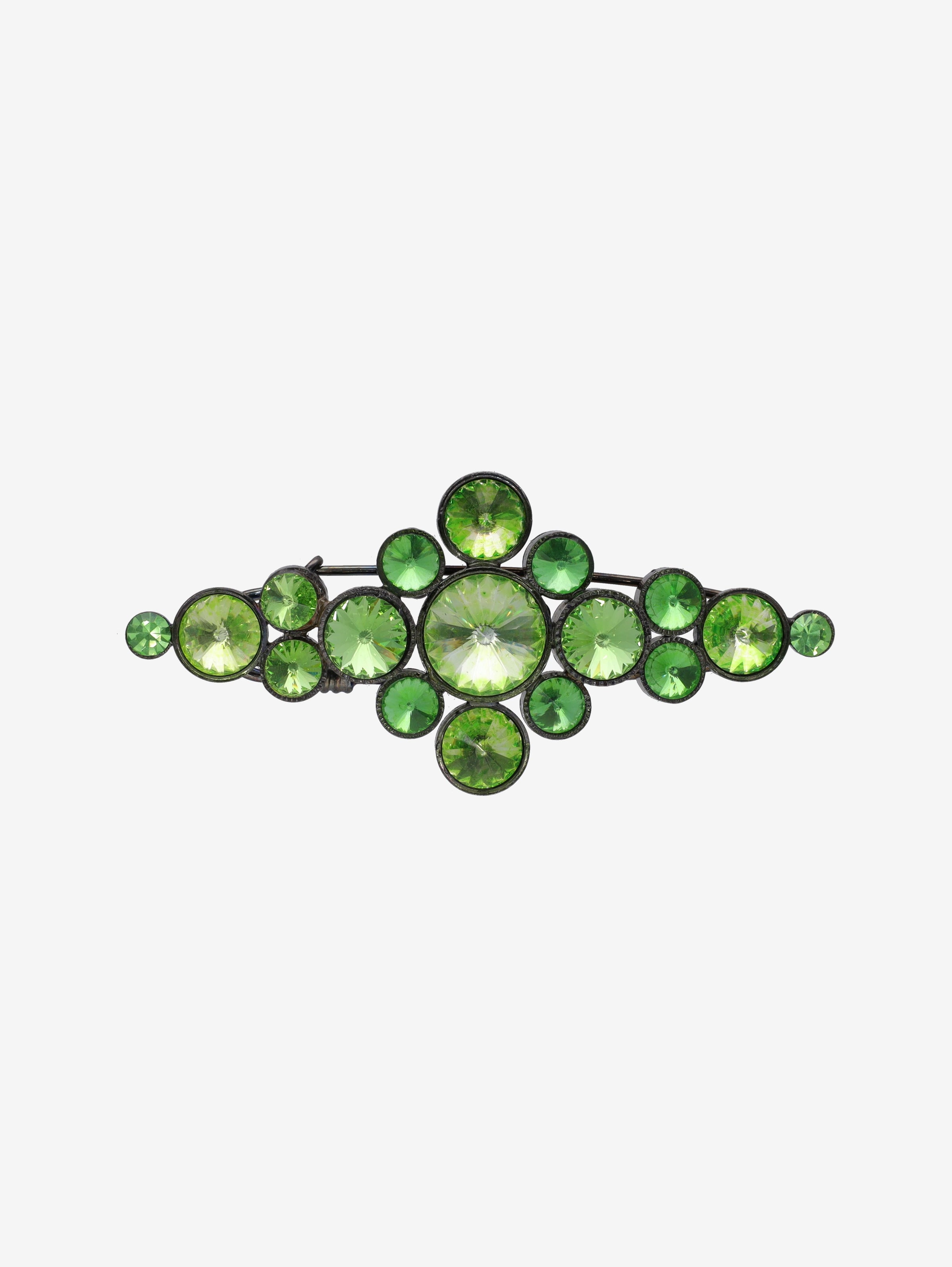 Missoni Adorned Brooch. This brooch is embellished with circular, green-hued gemstones.