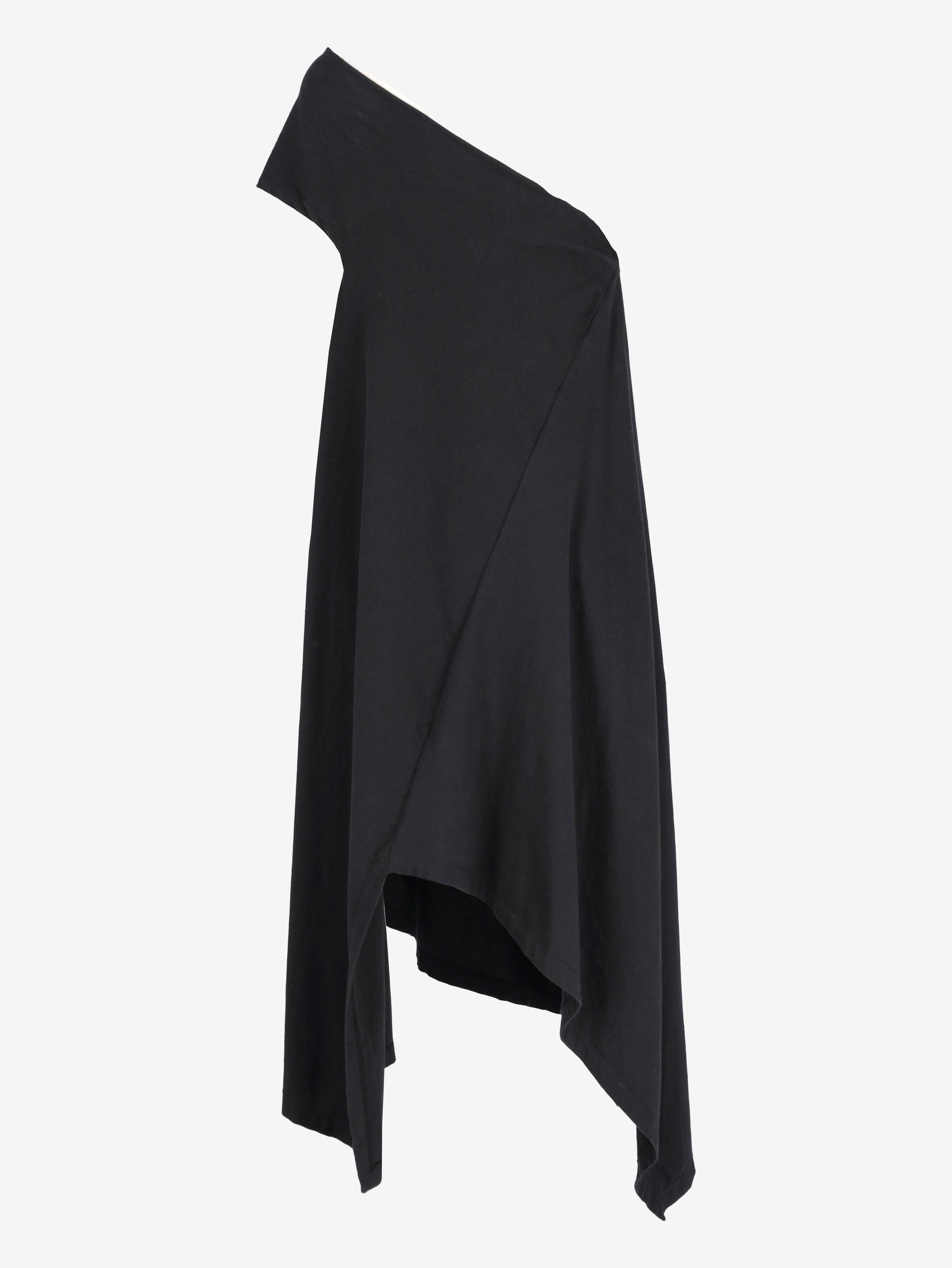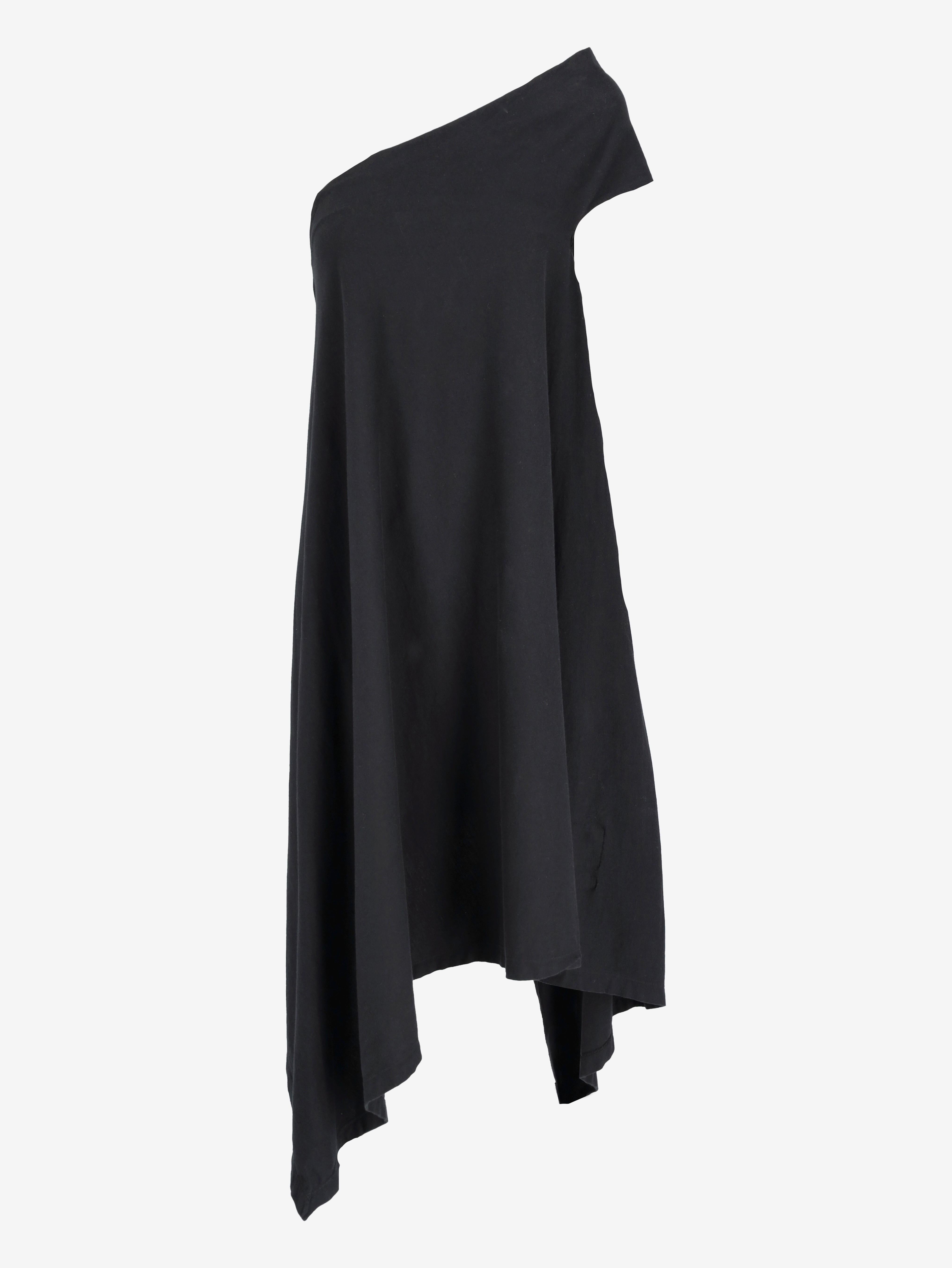 Rick Owens DRKSHDW One Shoulder Asymmetrical Dress in Black Cotton