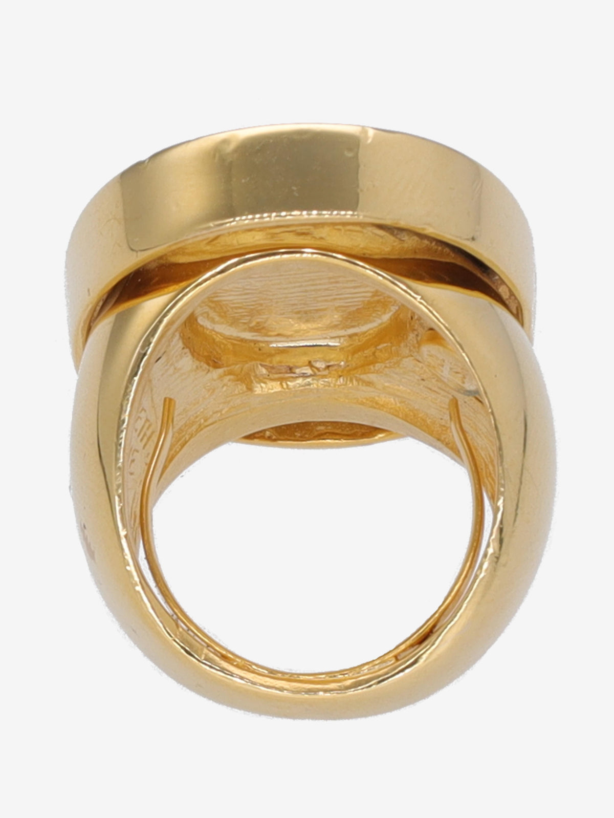 Kenneth Jay Lane White Enamelled Oval Ring adaptable inside. Wide band ring with white irregular oval on Hamilton gold American pewter casting.