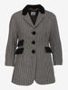 The front closure is made with velvet buttons, which perfectly match the style of the jacket. On the back of the jacket, there is a slit that allows for more freedom of movement, while two decorative buttons add further charm to the design.