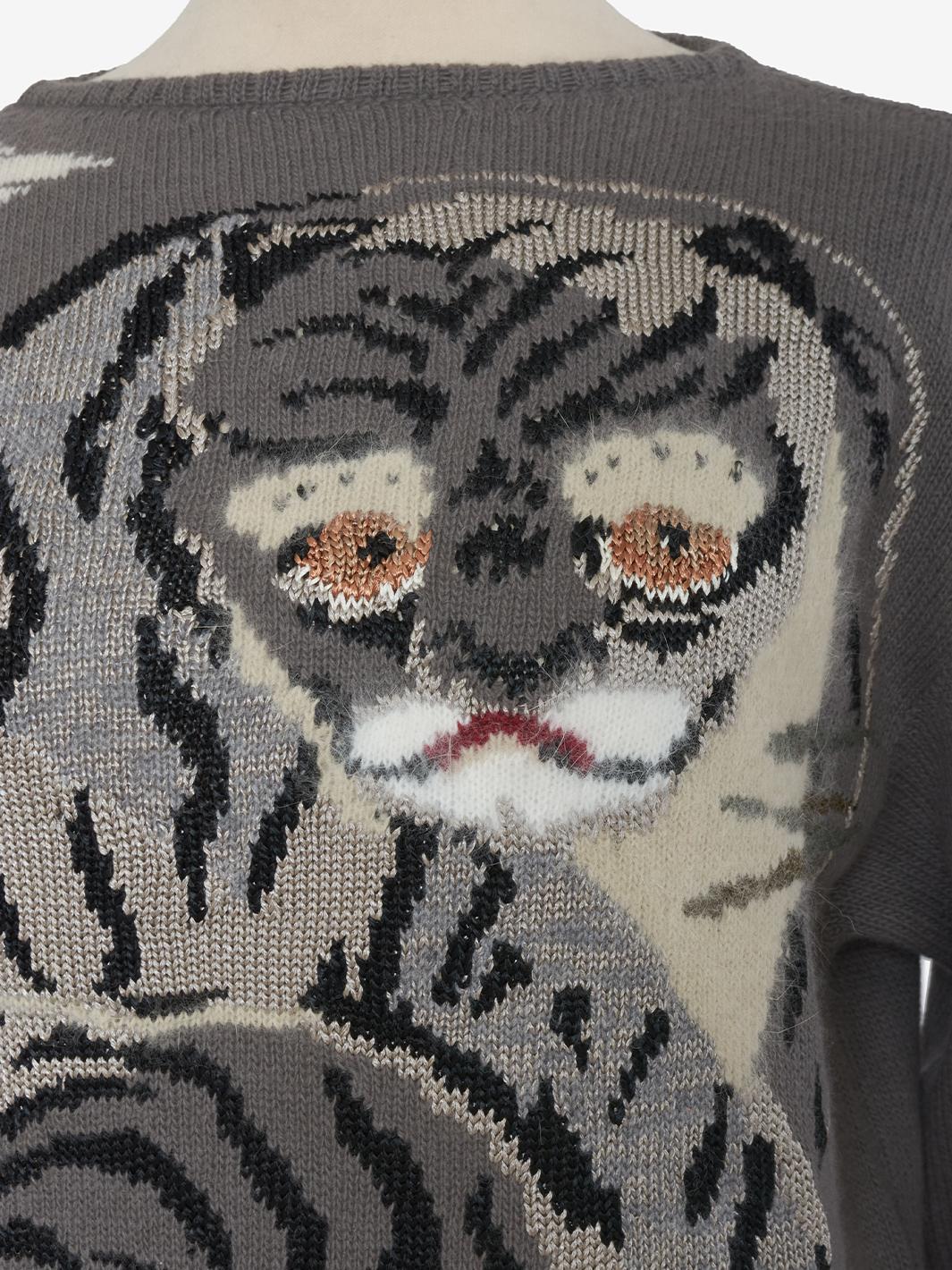 The design of this sweater features a classic silhouette enhanced by the detailed embroidery depicting two hyenas.