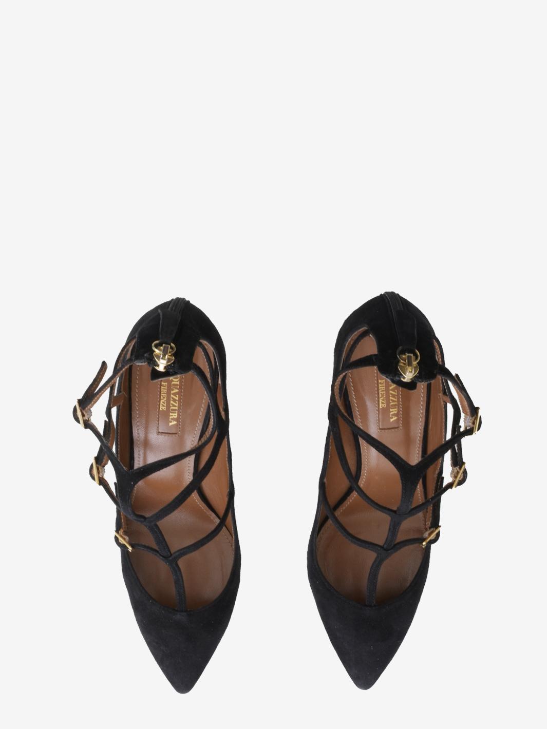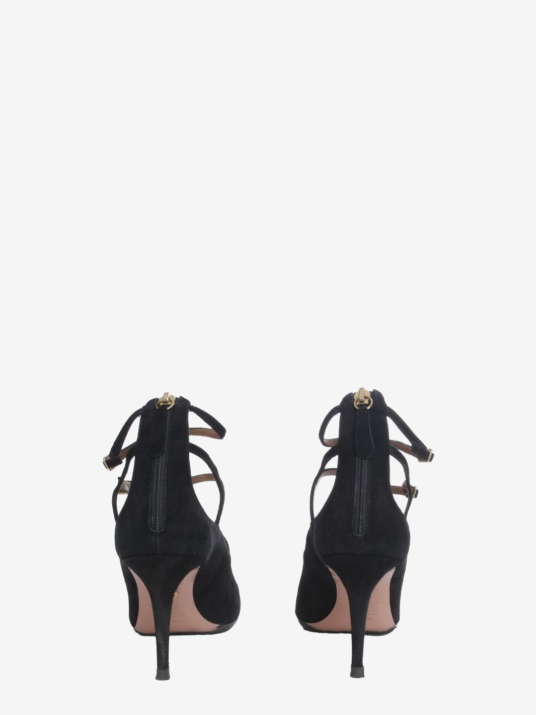 Aquazzurra Suede Pump is a made in italy shoe featuring three decorative side straps with strap closure. Dust bag and original box included.