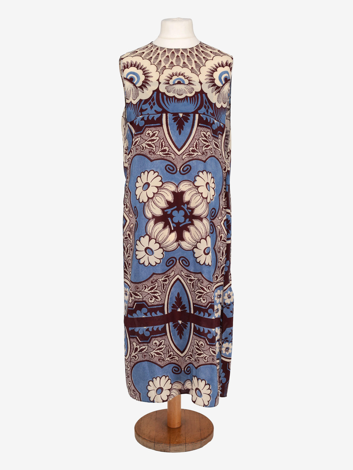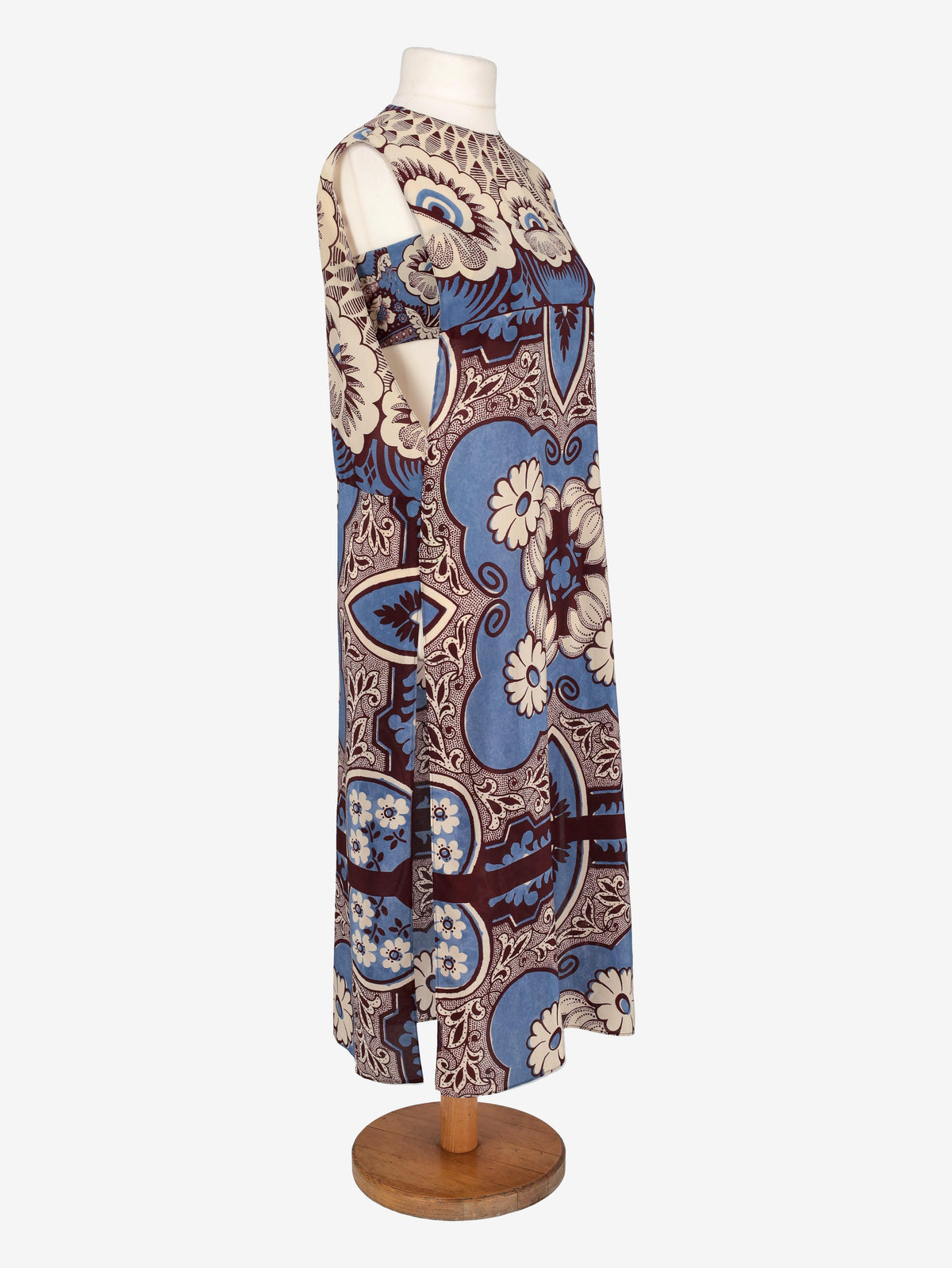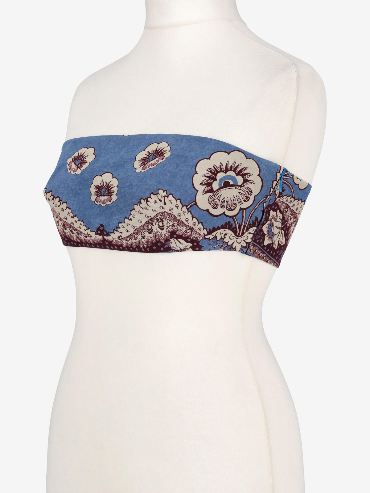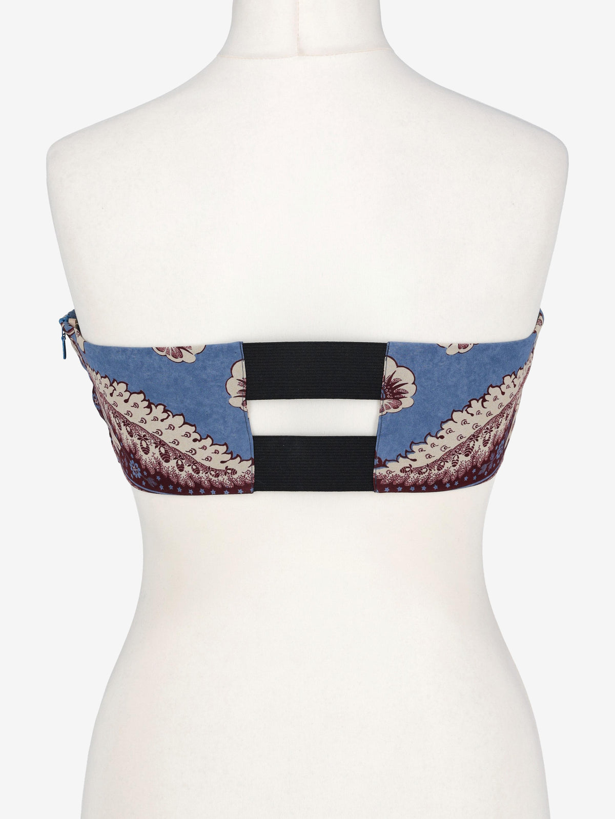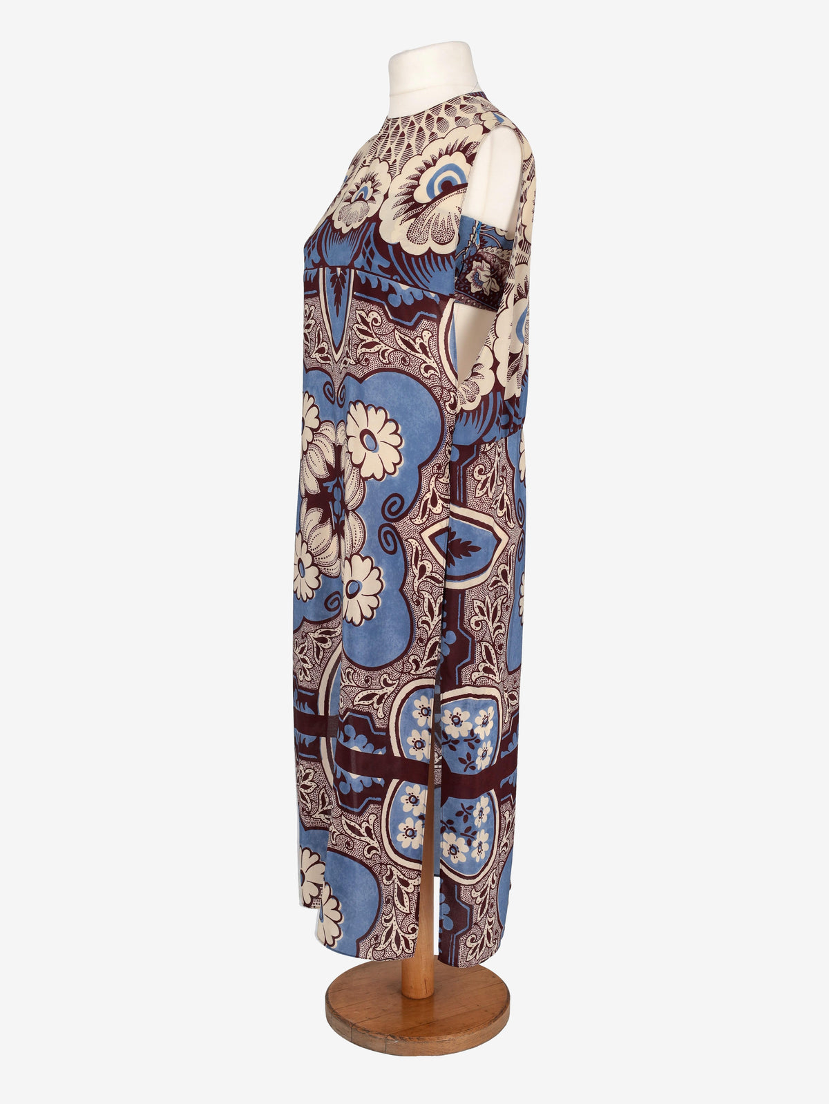 Valentino Patterned Silk Top It is a maxi cape with a bandeau top, round neckline and back button closure. Floral pattern and wide opening on the sides. With original tag.