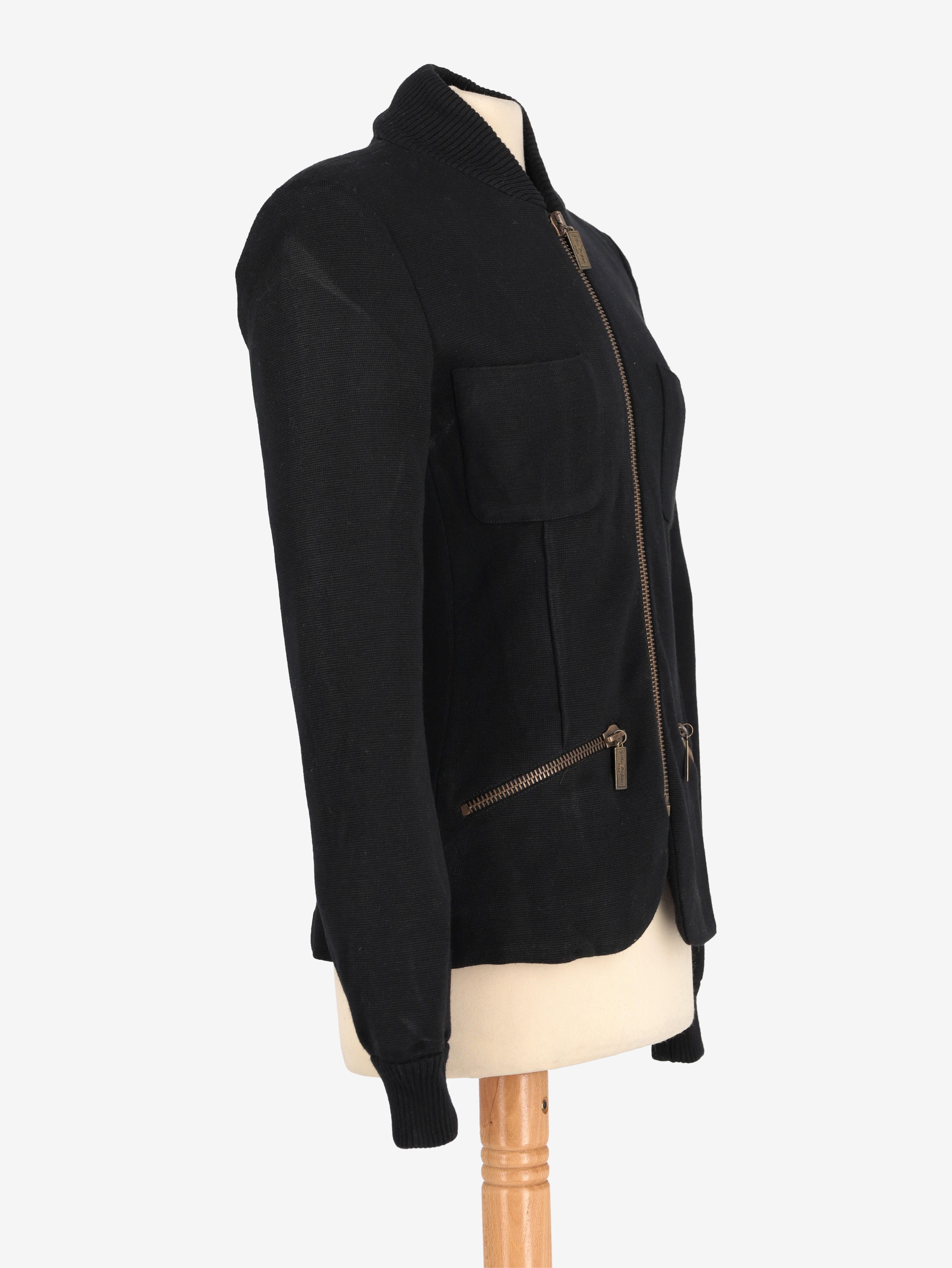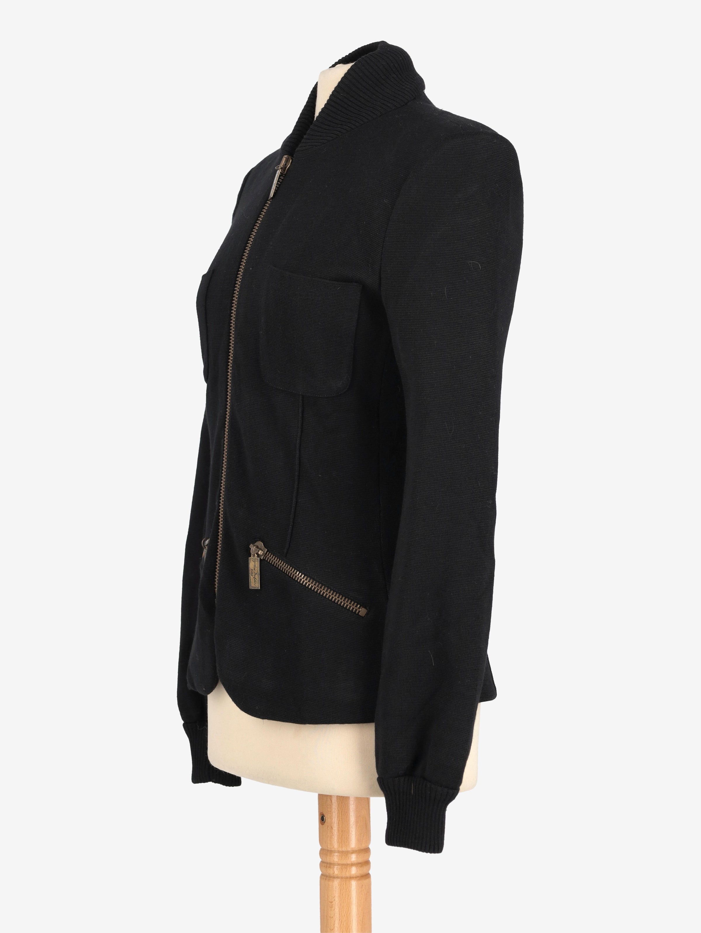 Gilles Dufour Wool Jacket. This wool jacket features a zip-front closure and zipped front pockets. Designed with puffer-style long sleeves, it has a body-skimming, contoured silhouette that creates a modern look.