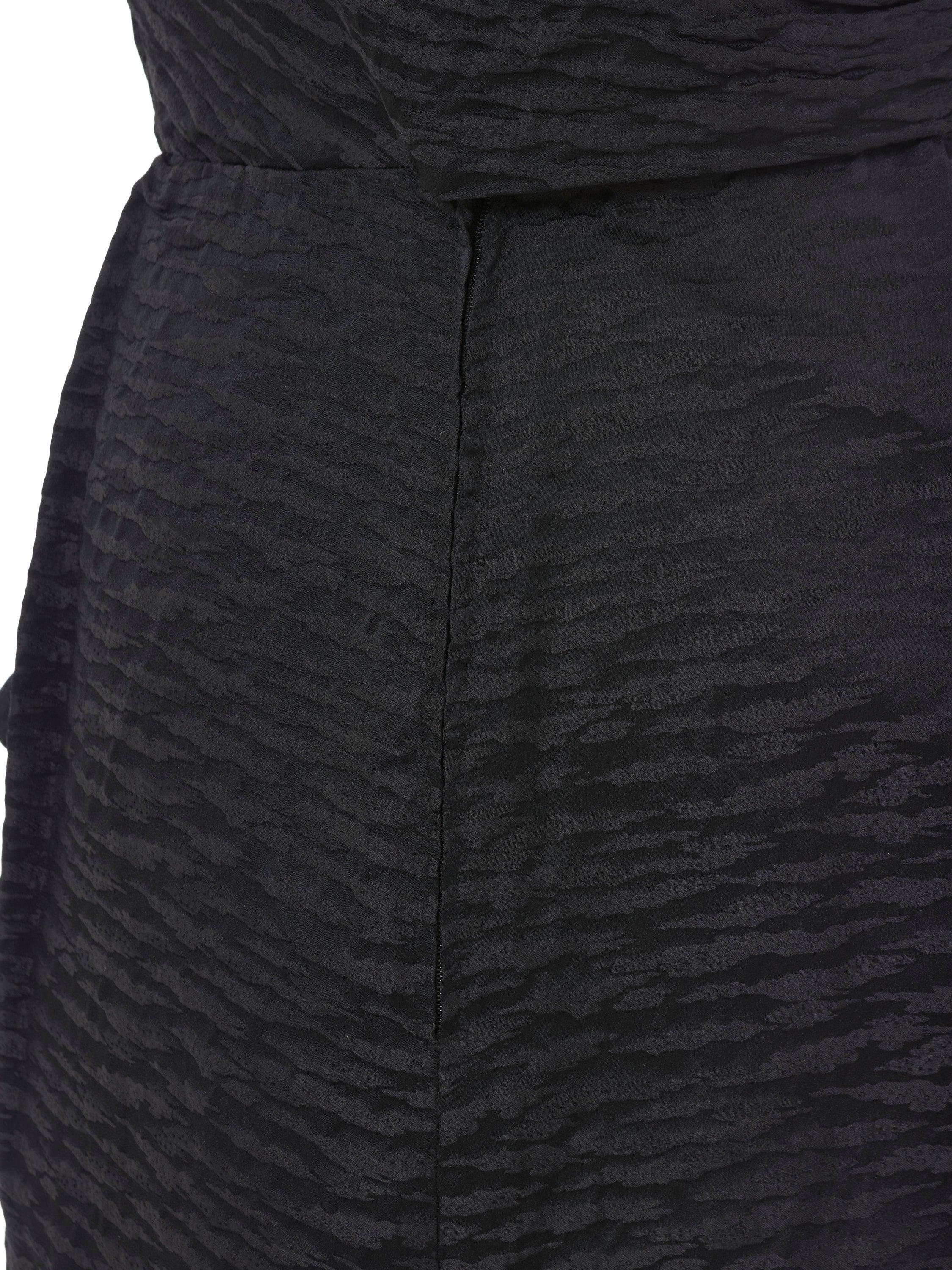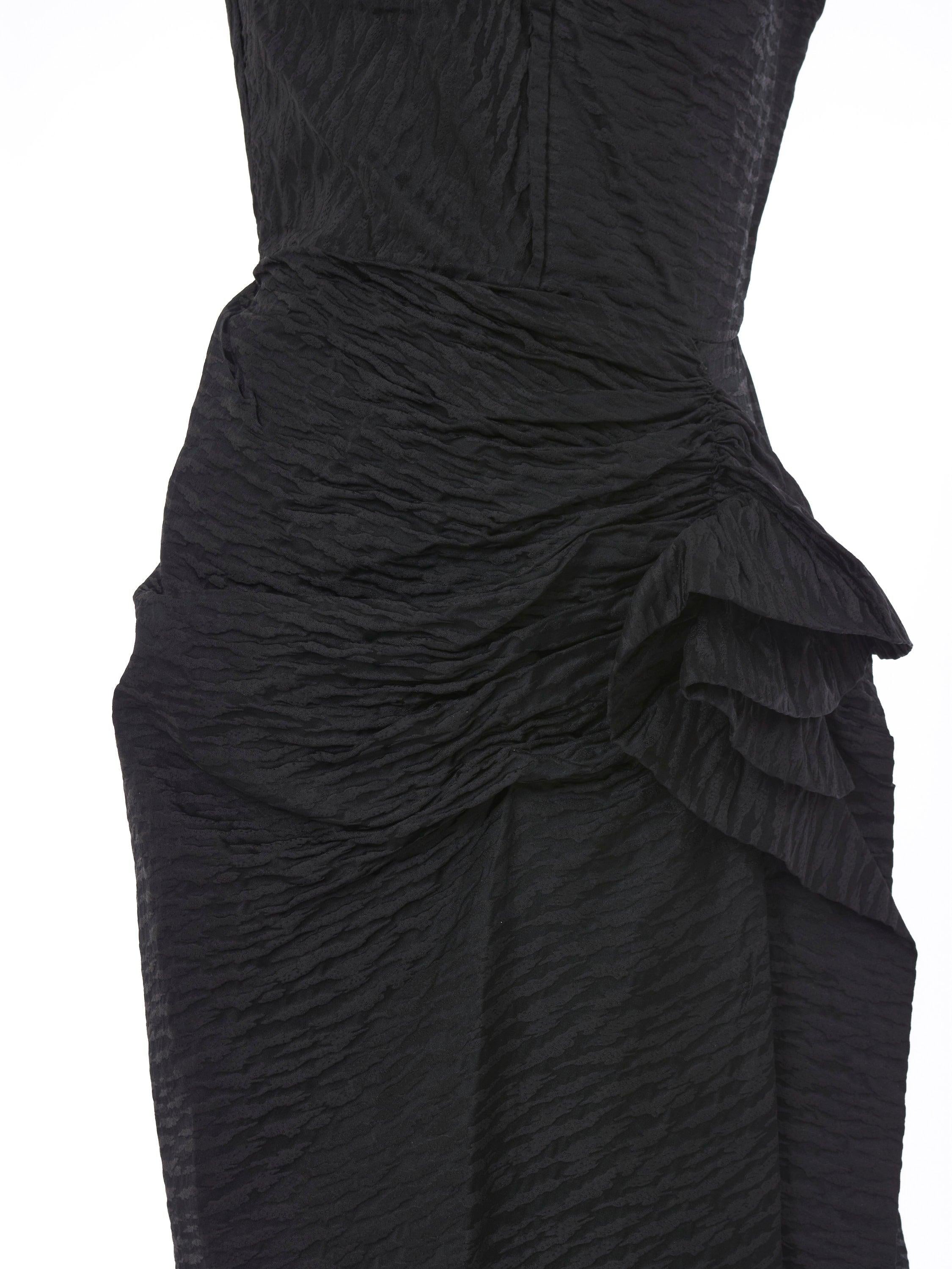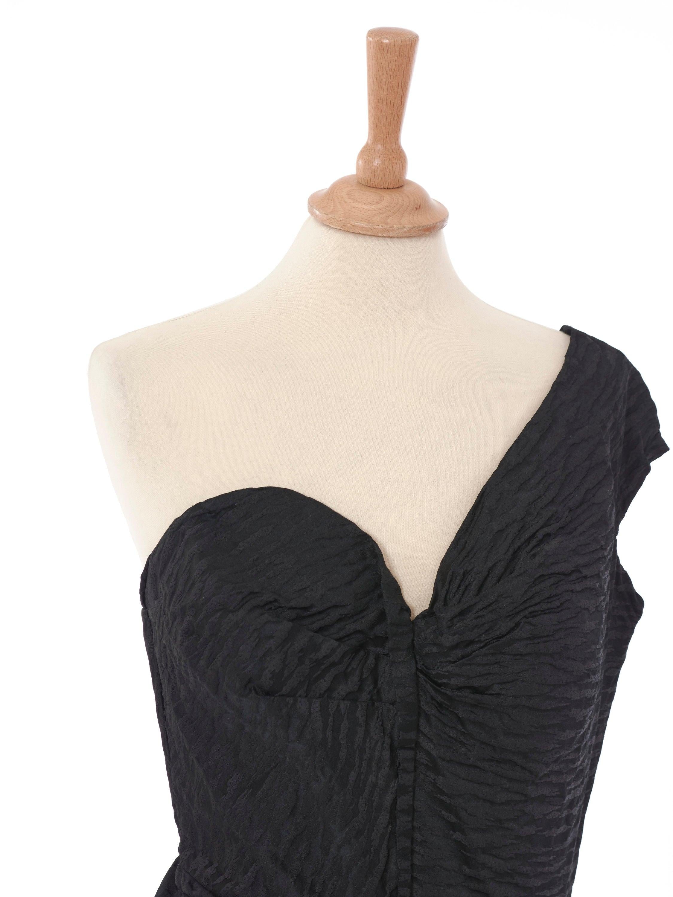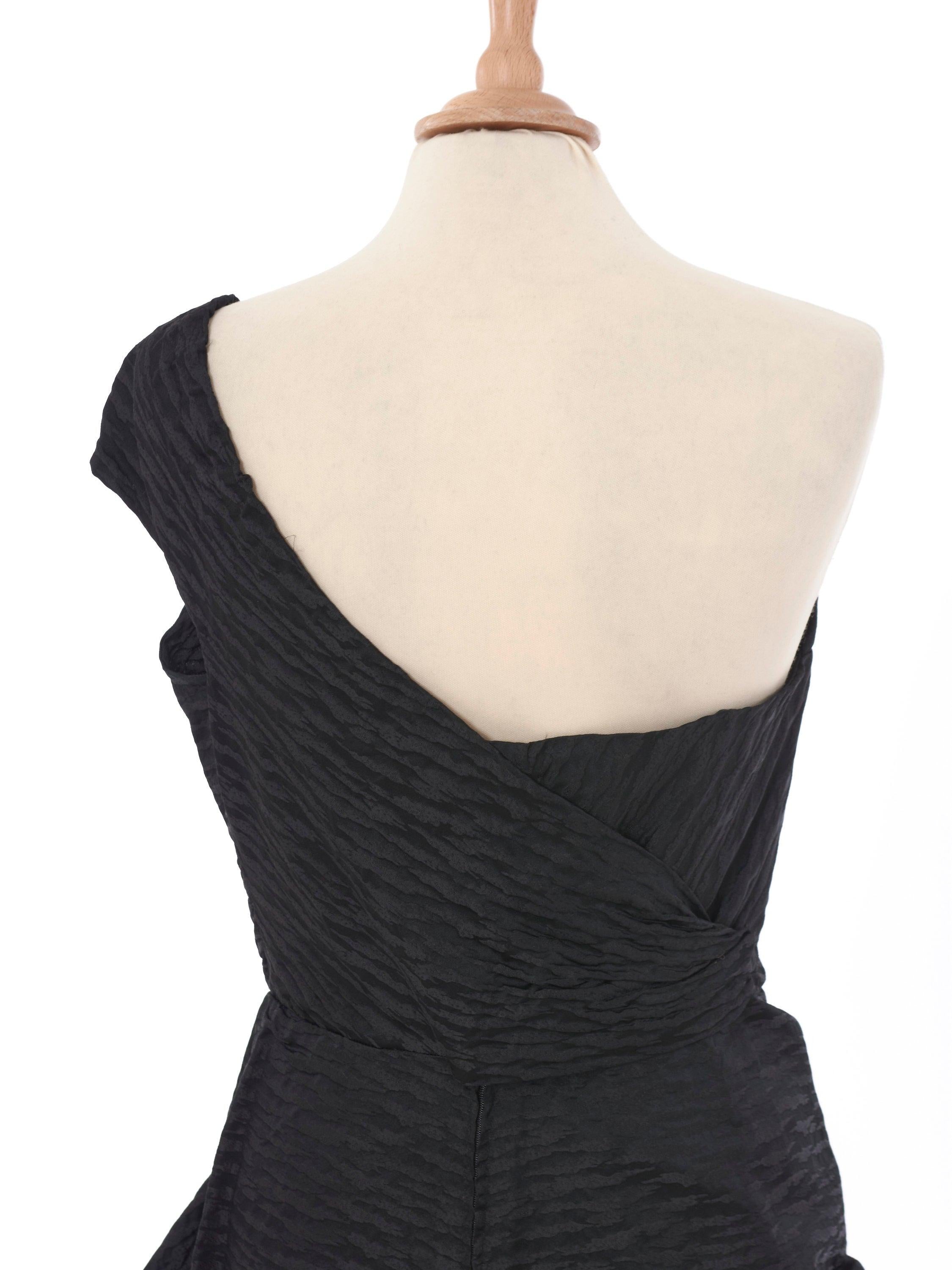 Abito nero monospalla con stampa zebrata tono su tono e scollo a cuore