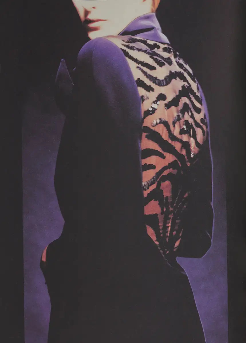Krizia’s style is easily recognizable, also thanks to its materials: Mariuccia blended traditional fabrics with rubber, alluminium, cork and all kinds of precious leathers, such as eel. She also used laminates and fancy pleates, as well as placing the iconic panther, symbol of the brand, on several garments. Her famous shorts, to which she dedicated an entire catwalk, won her the Golden Tiberius, back then a very important industry award.