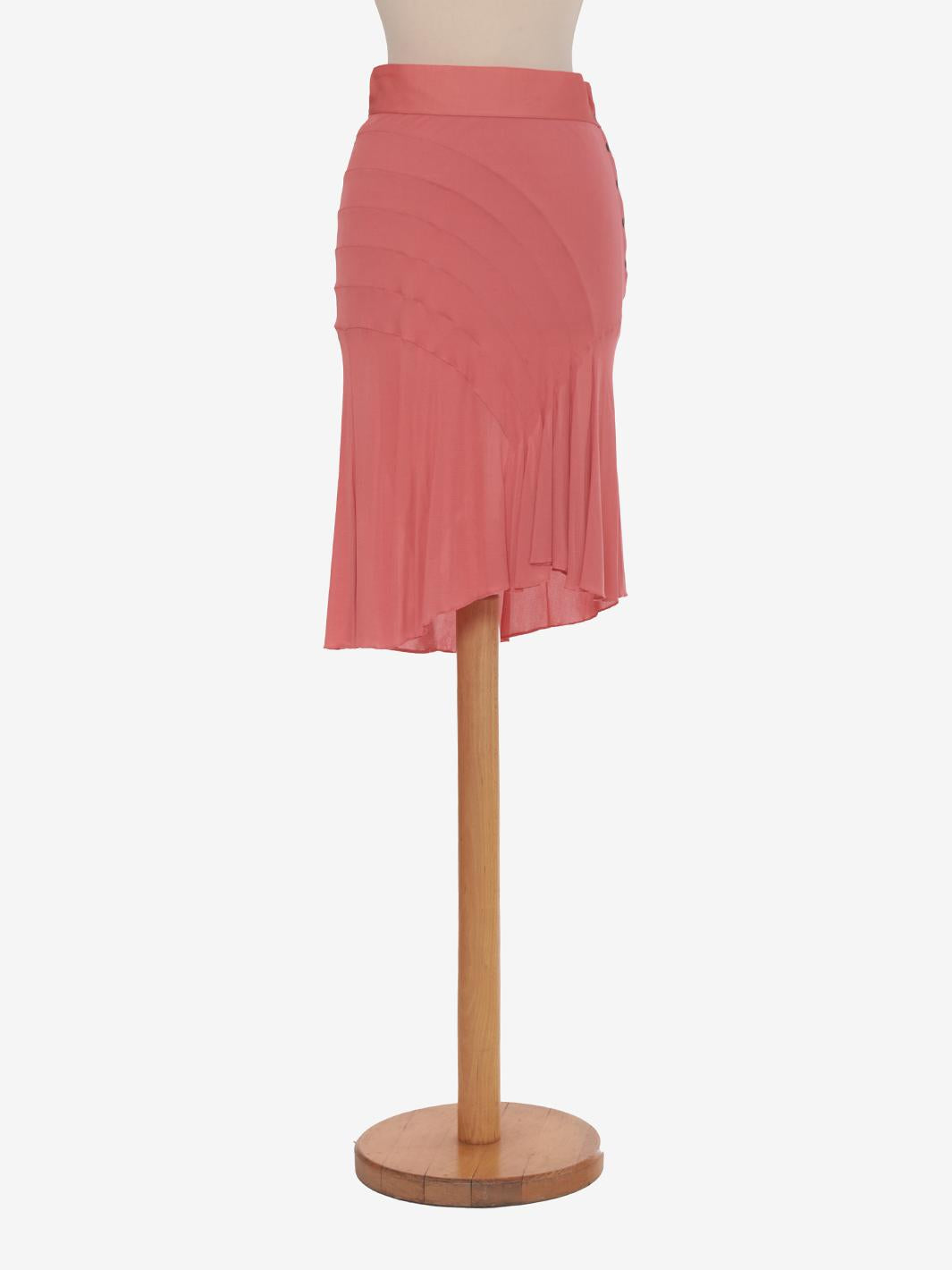 Alaïa's salmon-colored flared cut skirt with ruffles is an elegant and refined piece of clothing. The fabric has a light texture that gives the skirt a fluid movement.