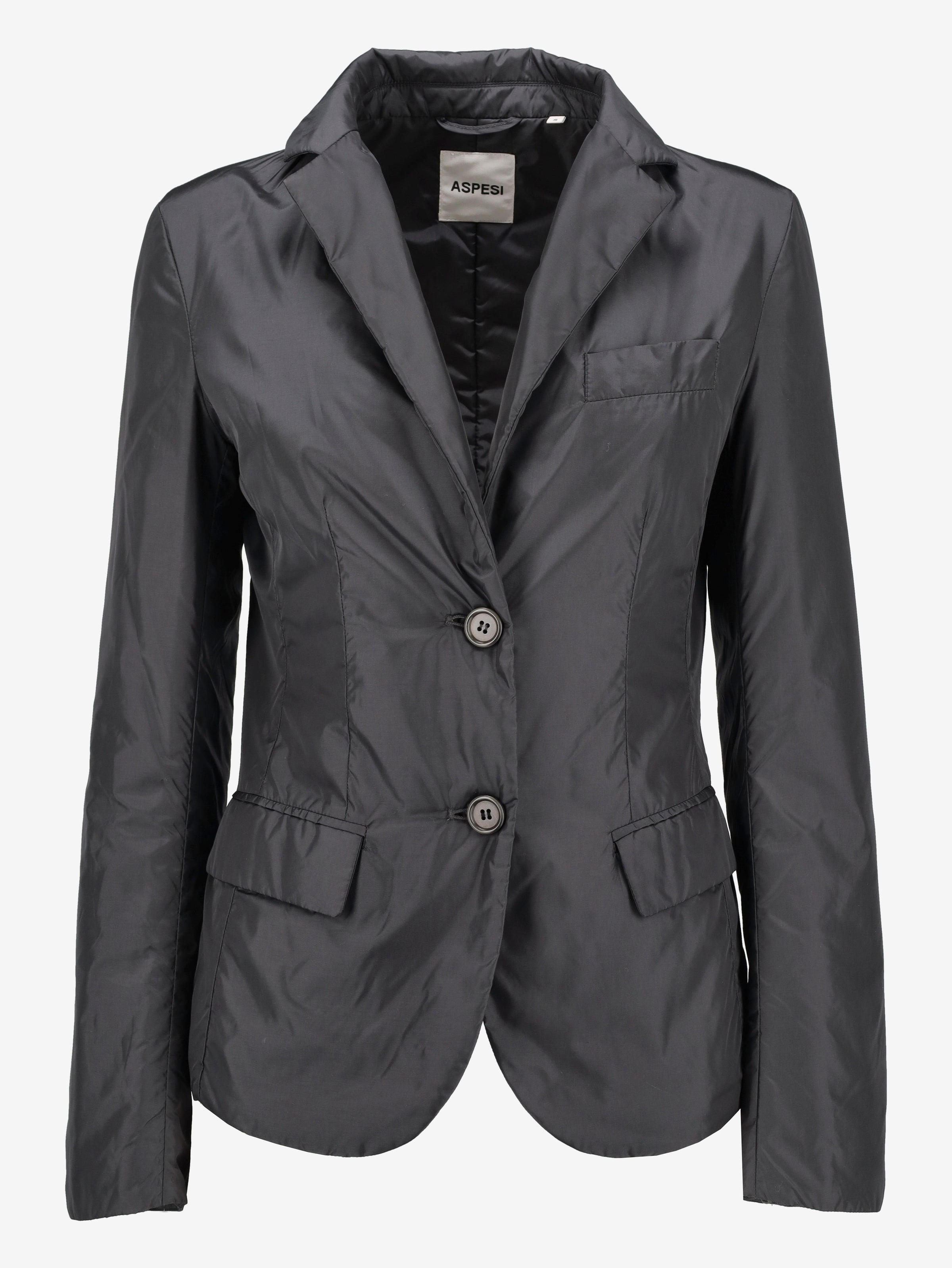 The design features a classic front button closure and practical front patch pockets, along with discreet interior pockets for added utility.
