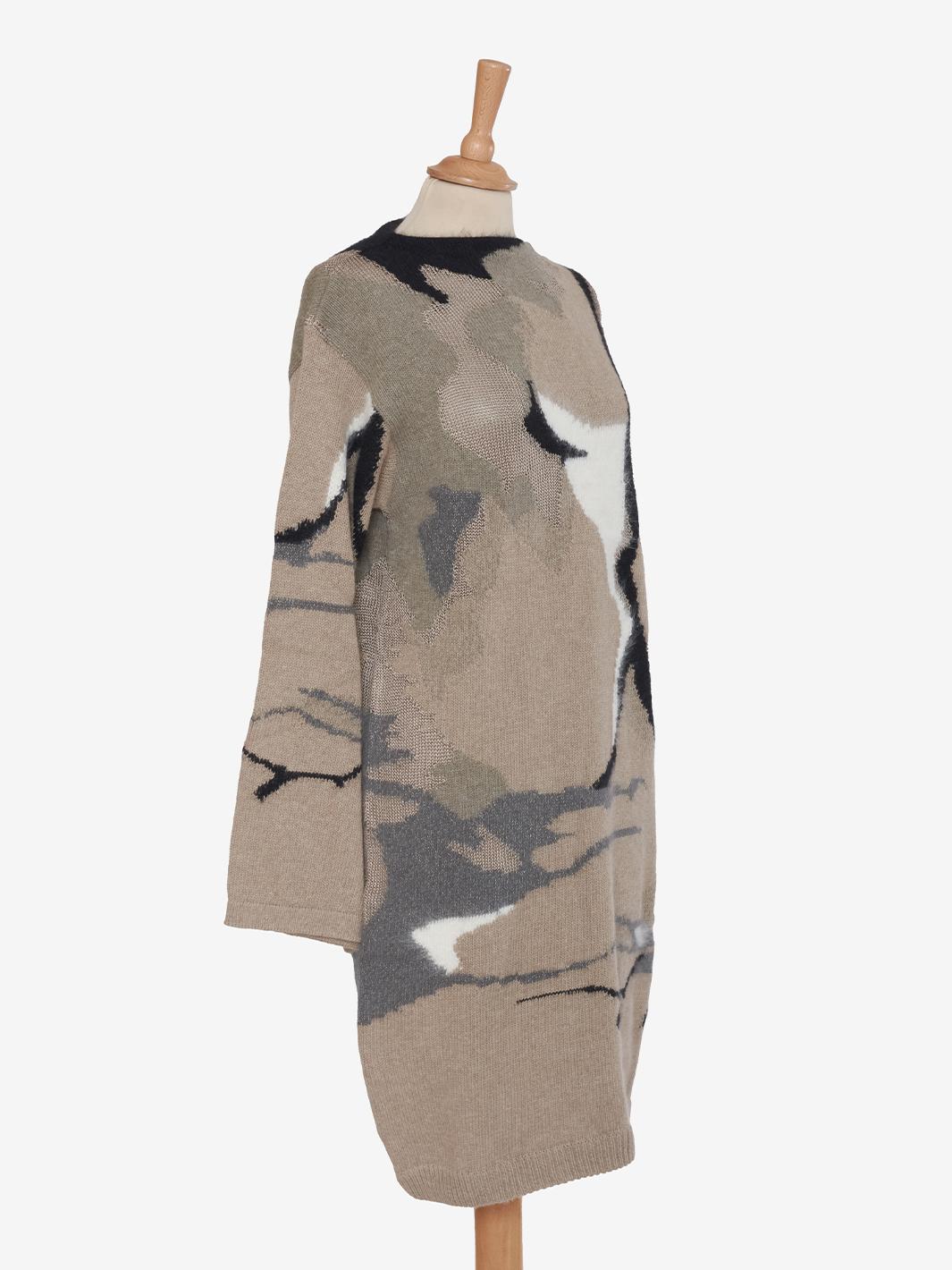 The Krizia knit with abstract embroidery is a high-fashion garment that combines the distinctive elegance of the famous Italian brand with artistic and creative design.
