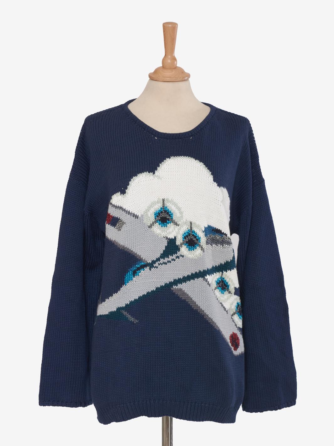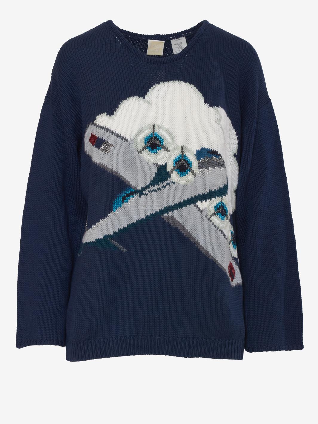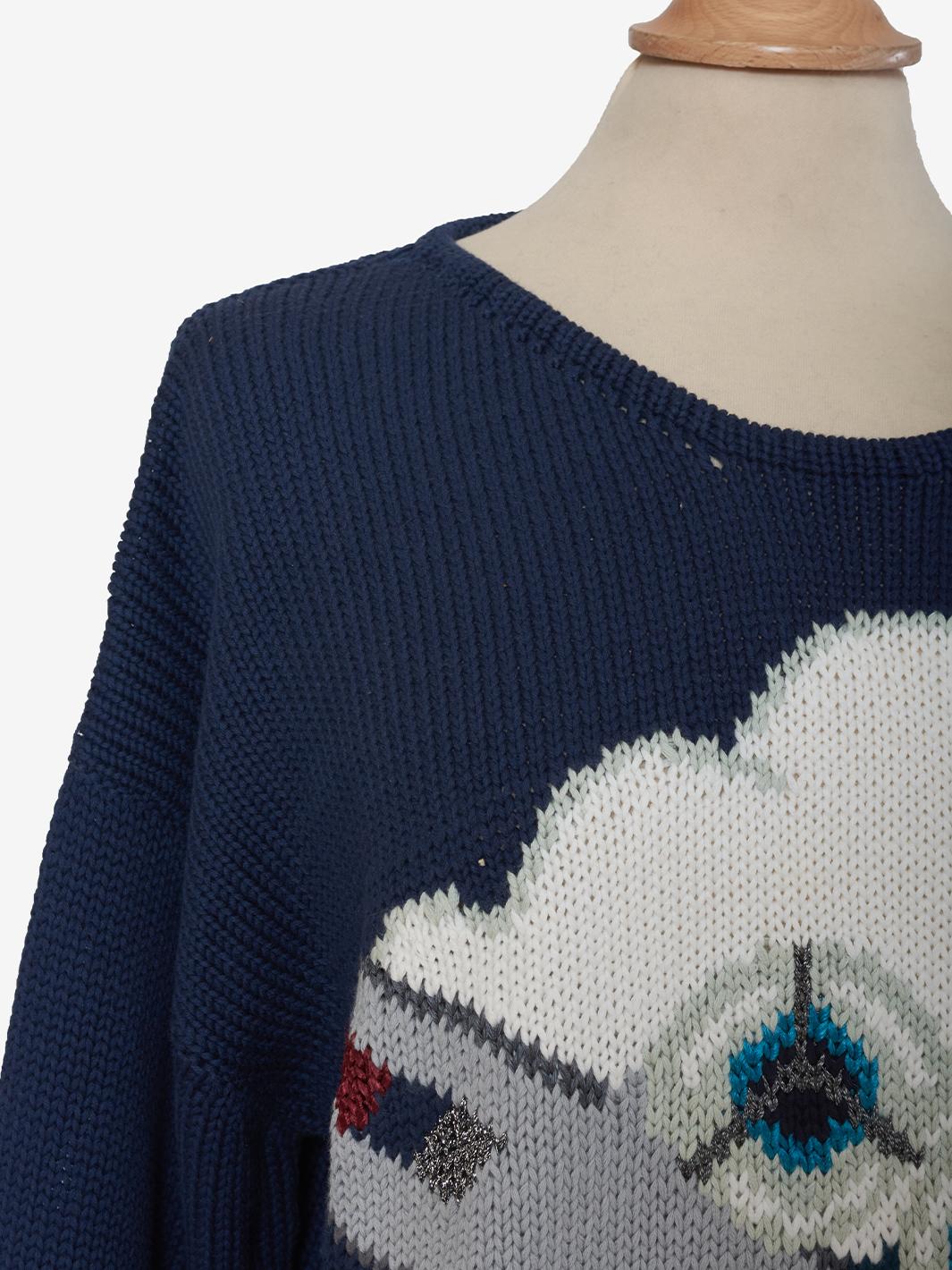 Krizia's chunky knit sweater with air embroidery is a fashion item that combines the sturdiness of chunky knit with the originality and art of embroidery.