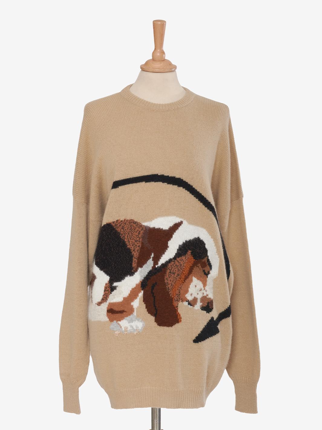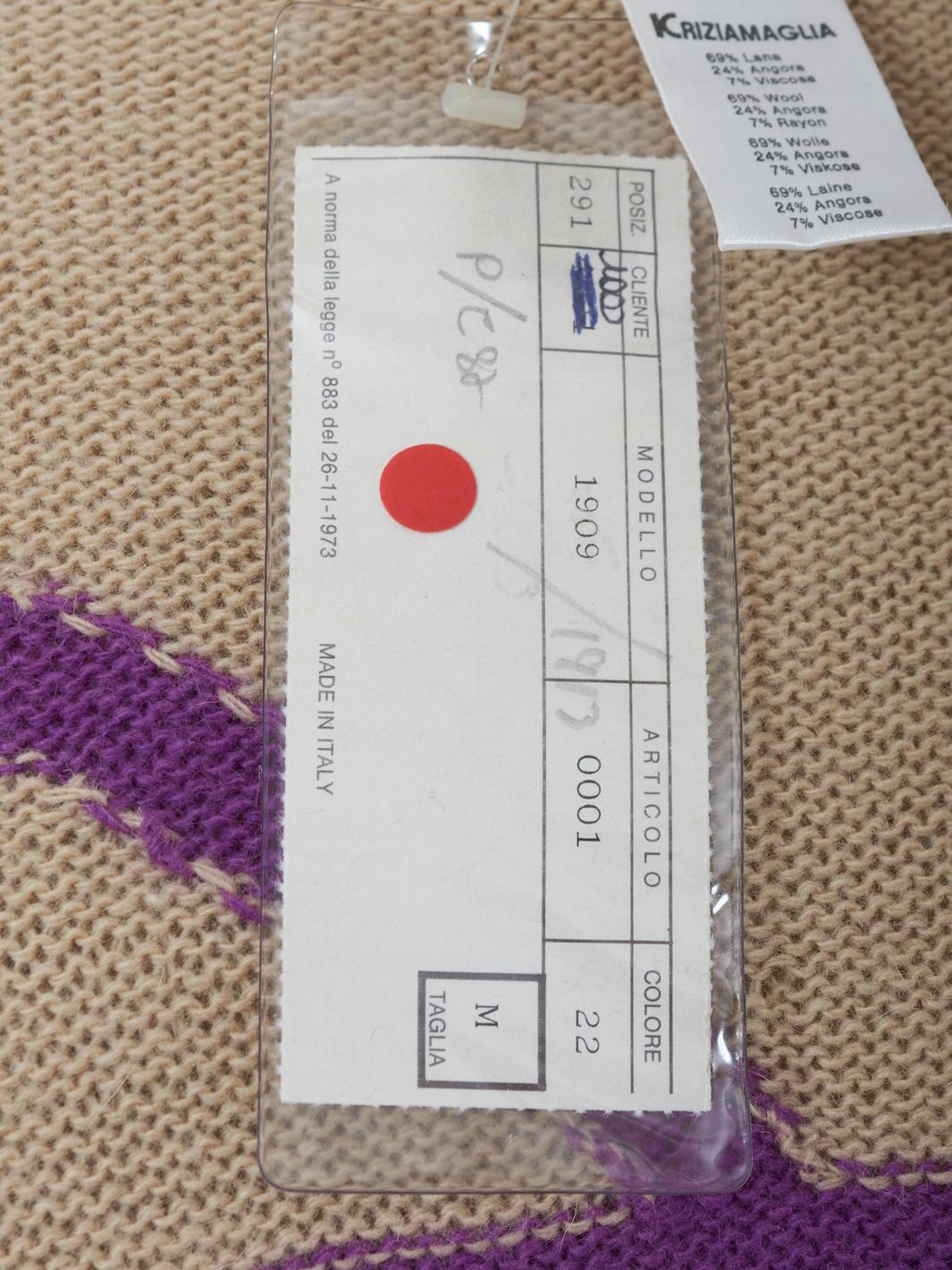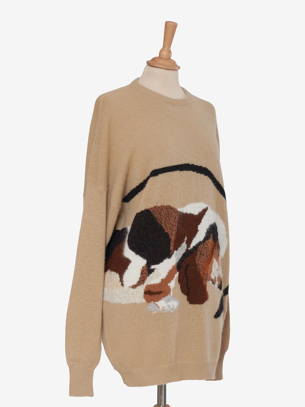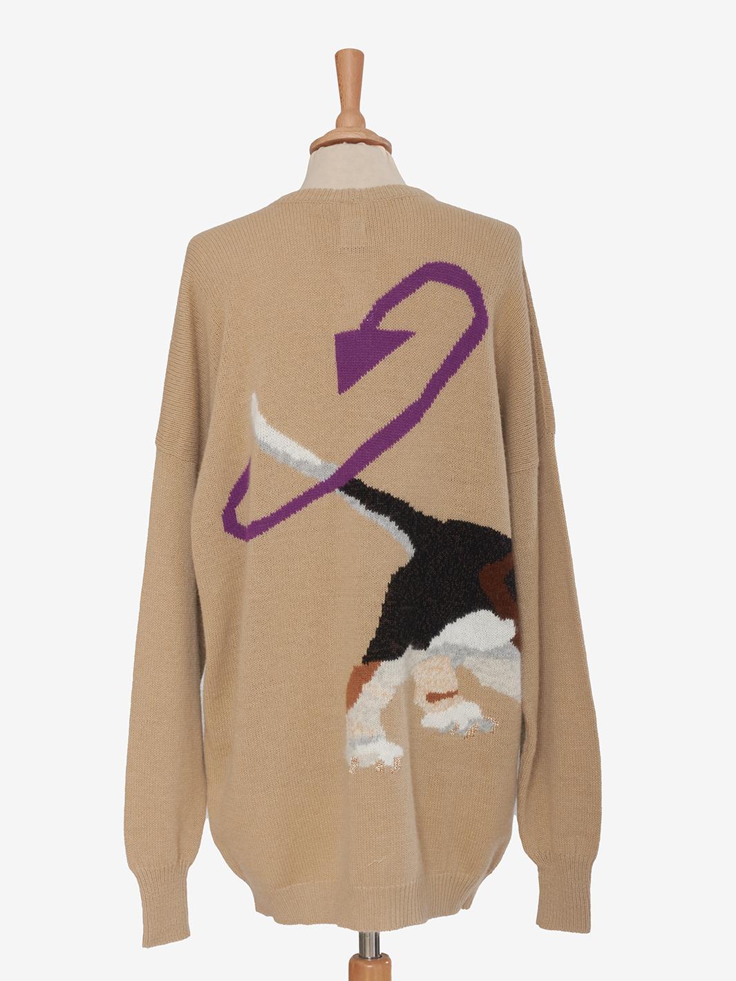 The Krizia sweater with dog embroidery is a fashion item that combines the brand's sophisticated elegance with a touch of originality and playful sophistication. The design of this sweater features a classic silhouette enhanced by detailed embroidery depicting a dog. The embroidered dog is crafted with great attention to detail, creating a charming and recognizable image.