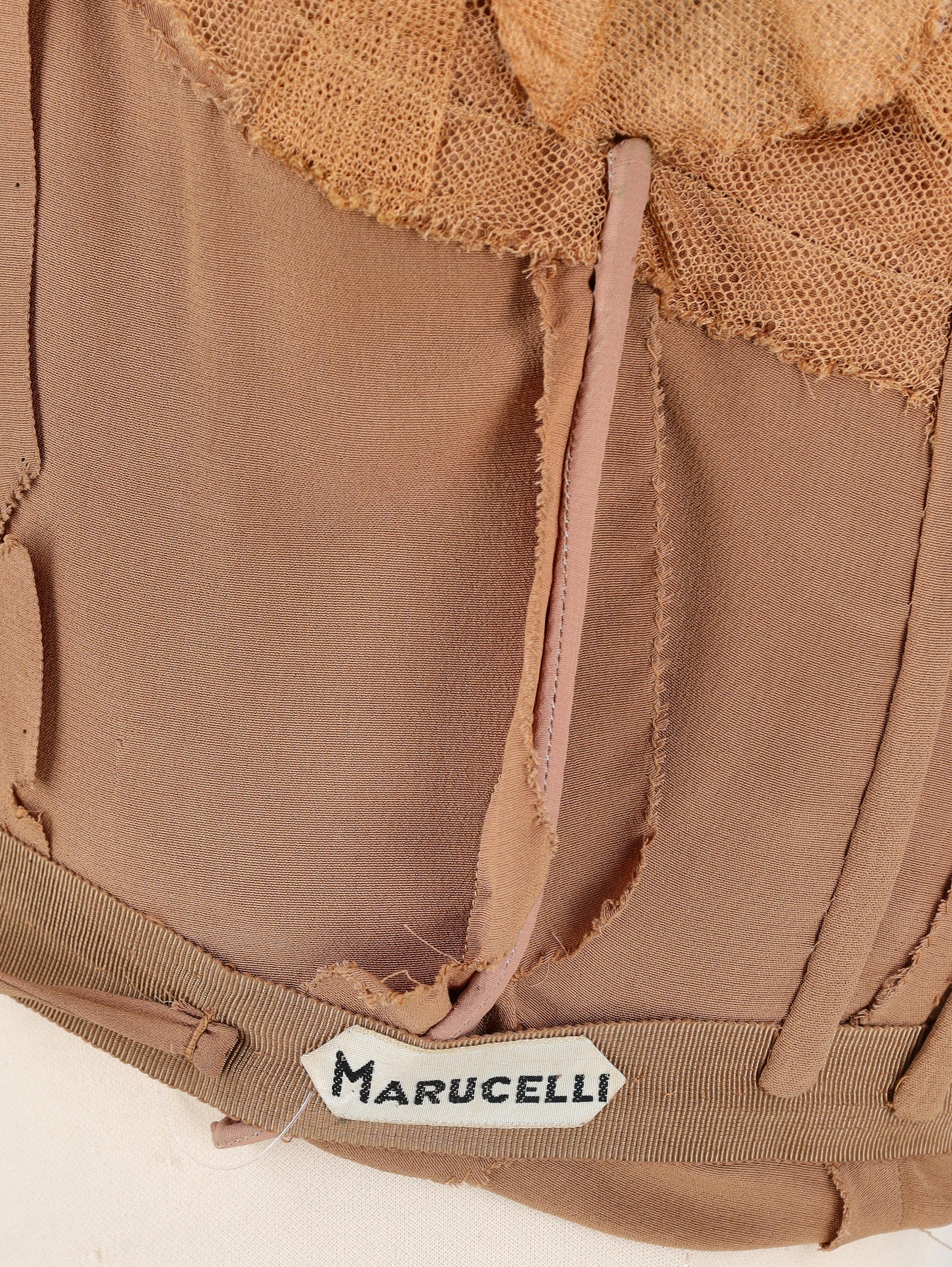 Vintage Pleated Long Dress is a gown with sweetheart neckline decorated with hand-embroidered beads, shifted pleated skirt with train, and splinted bodice with side zipper closure.