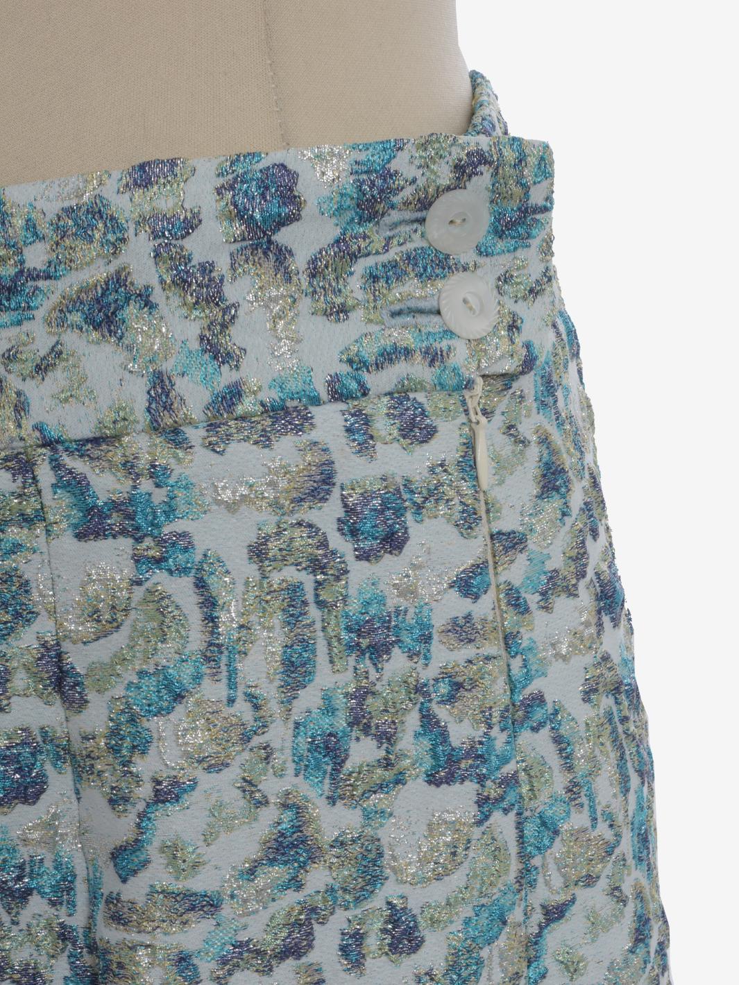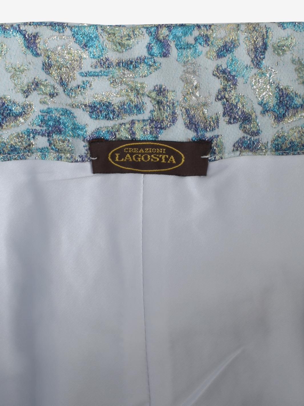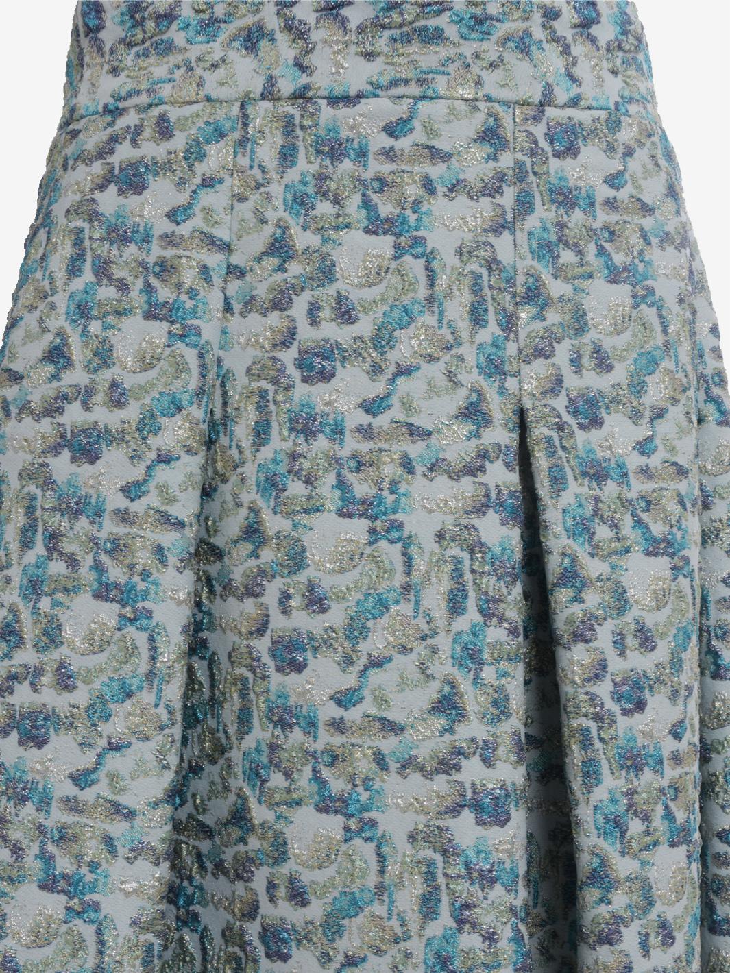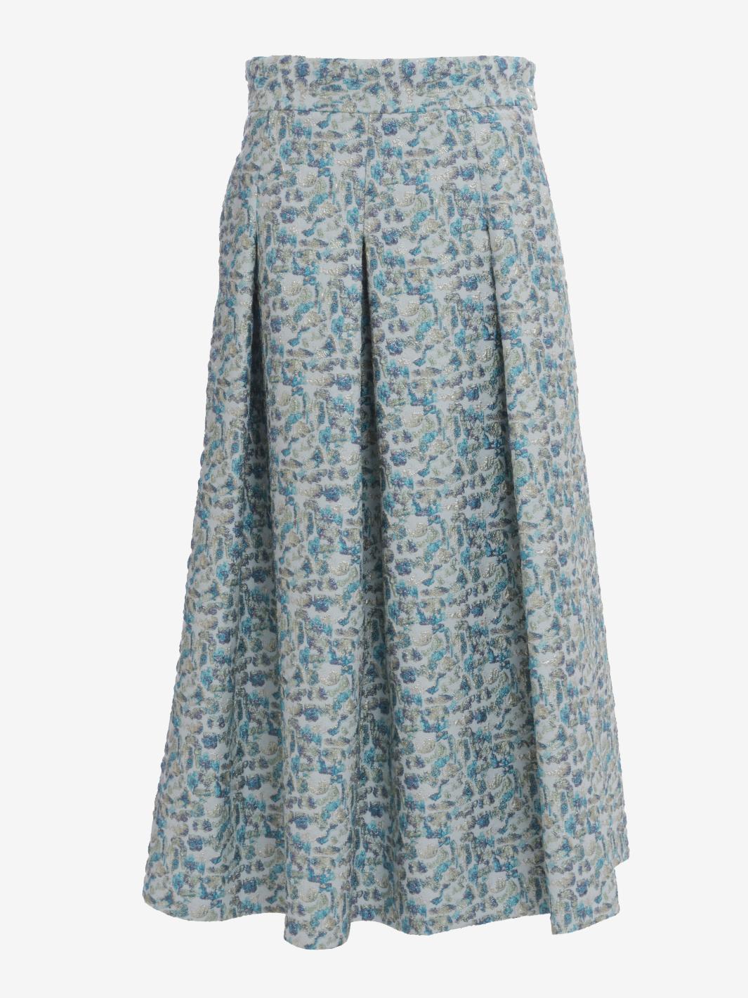 Vintage Embroidered Skirt is a made in italy garment featuring an embroidered pattern with lurex inlays, zipper and button side closure, and large pleats that create movement to the long skirt.