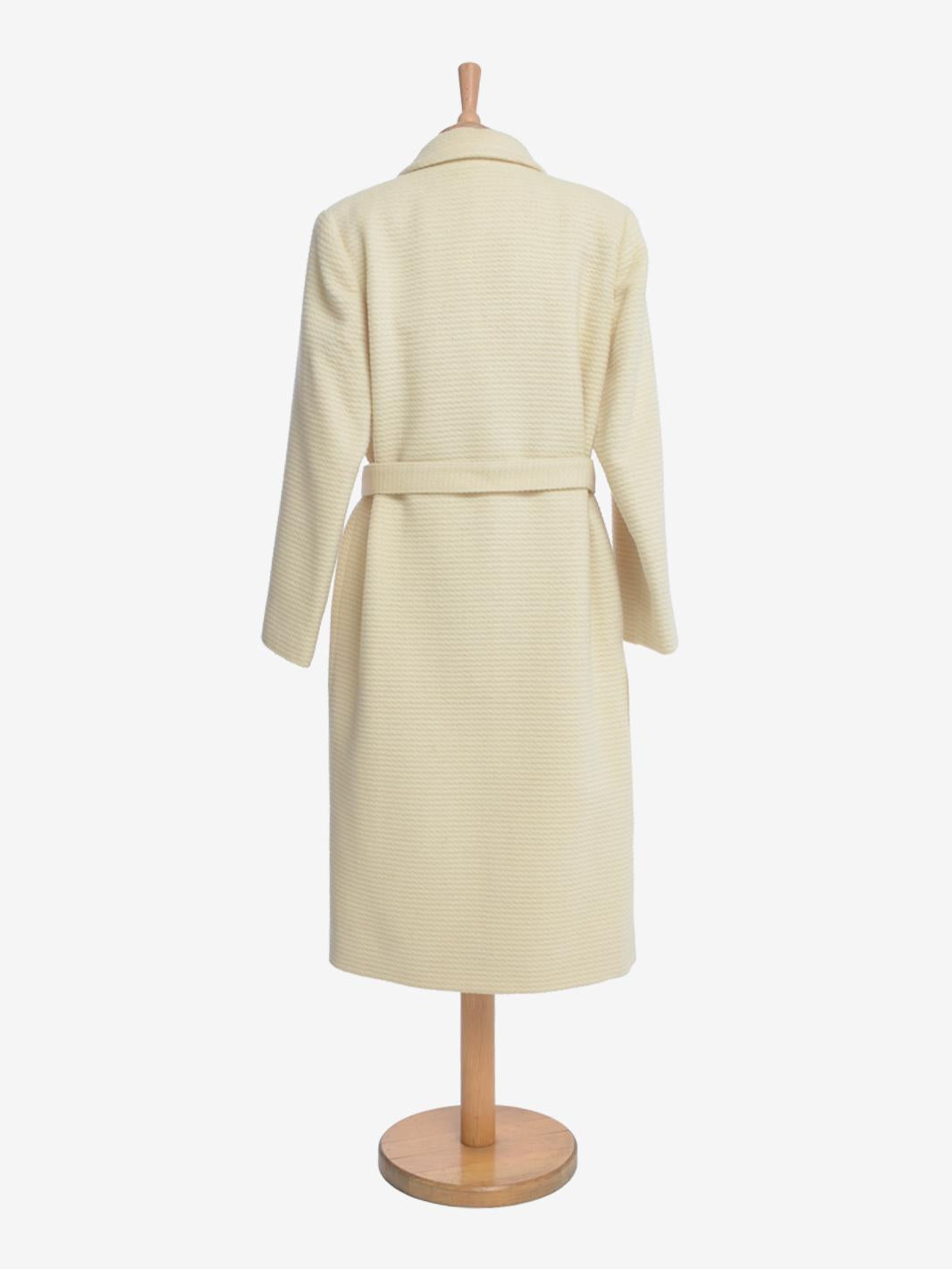 Vintage Wool Coat is a made in Italy garment Features high quality fabric, two front pockets and waist belt.