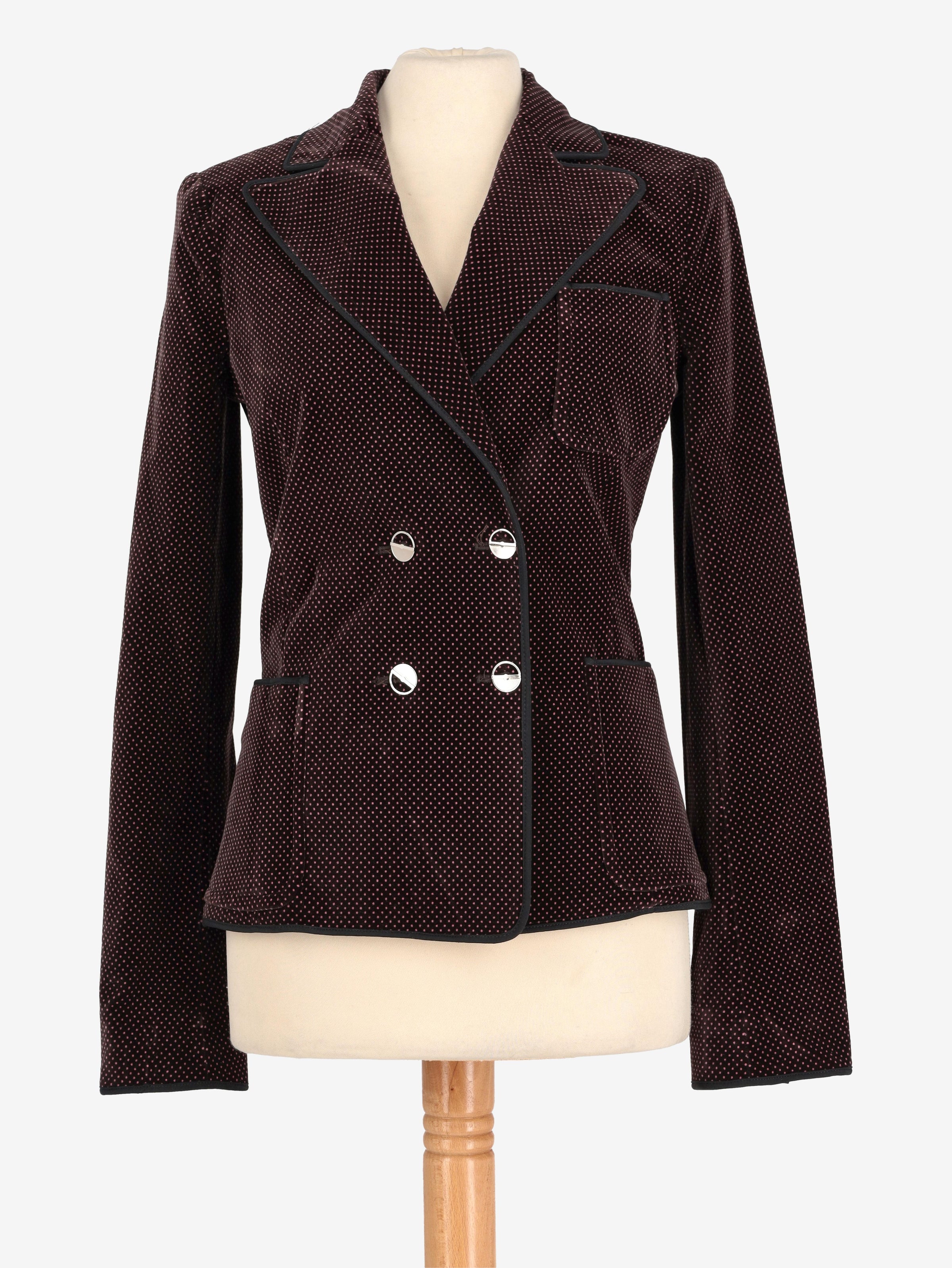 Fendi Polka Dots Jacket. This double-breasted jacket features a classic collar and front pockets, combining a timeless silhouette with practical detailing.