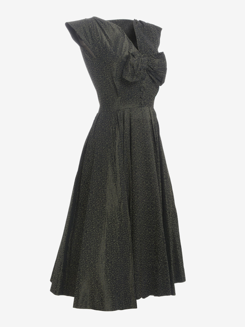 复古蝴蝶结中长连衣裙 - 60 年代风格