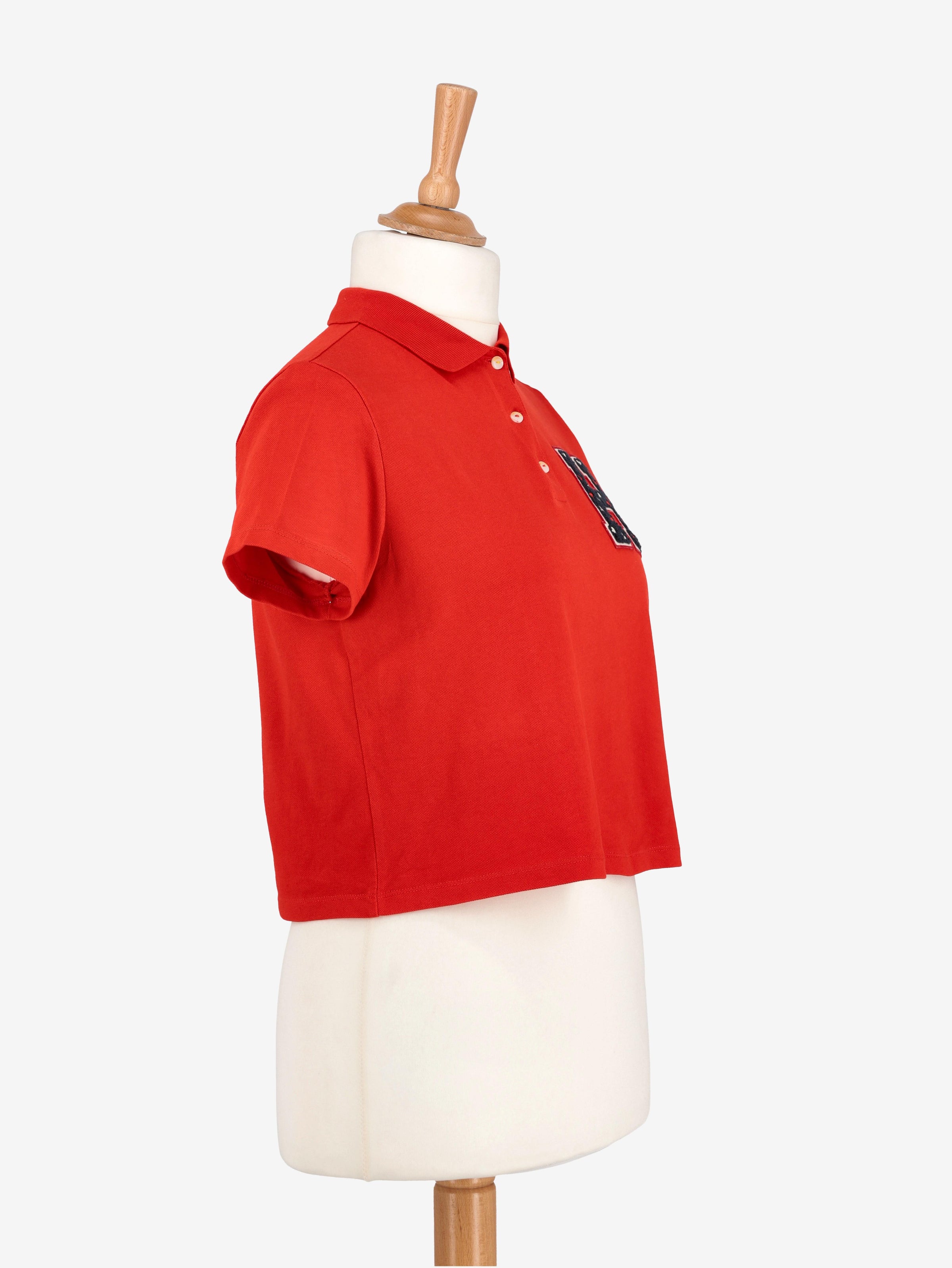Tommy Hilfiger Polo Shirt is a slightly crop knit with embossed lettering and comfortable fit.